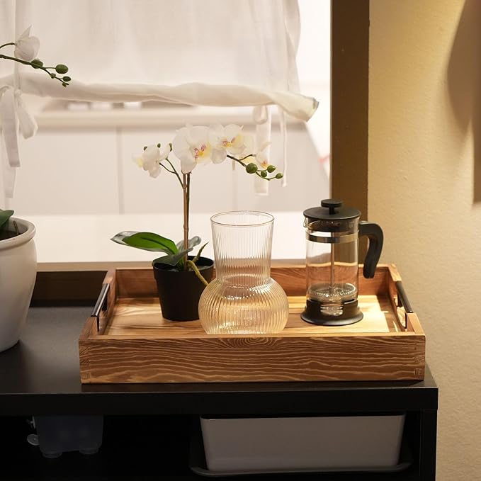 • Quality Craftsmanship: Our wooden tray with handles is made of pine wood, made with strong finger joints, ergonomic grip handles, smooth sanded corners & edges; Built strong for long-lasting use