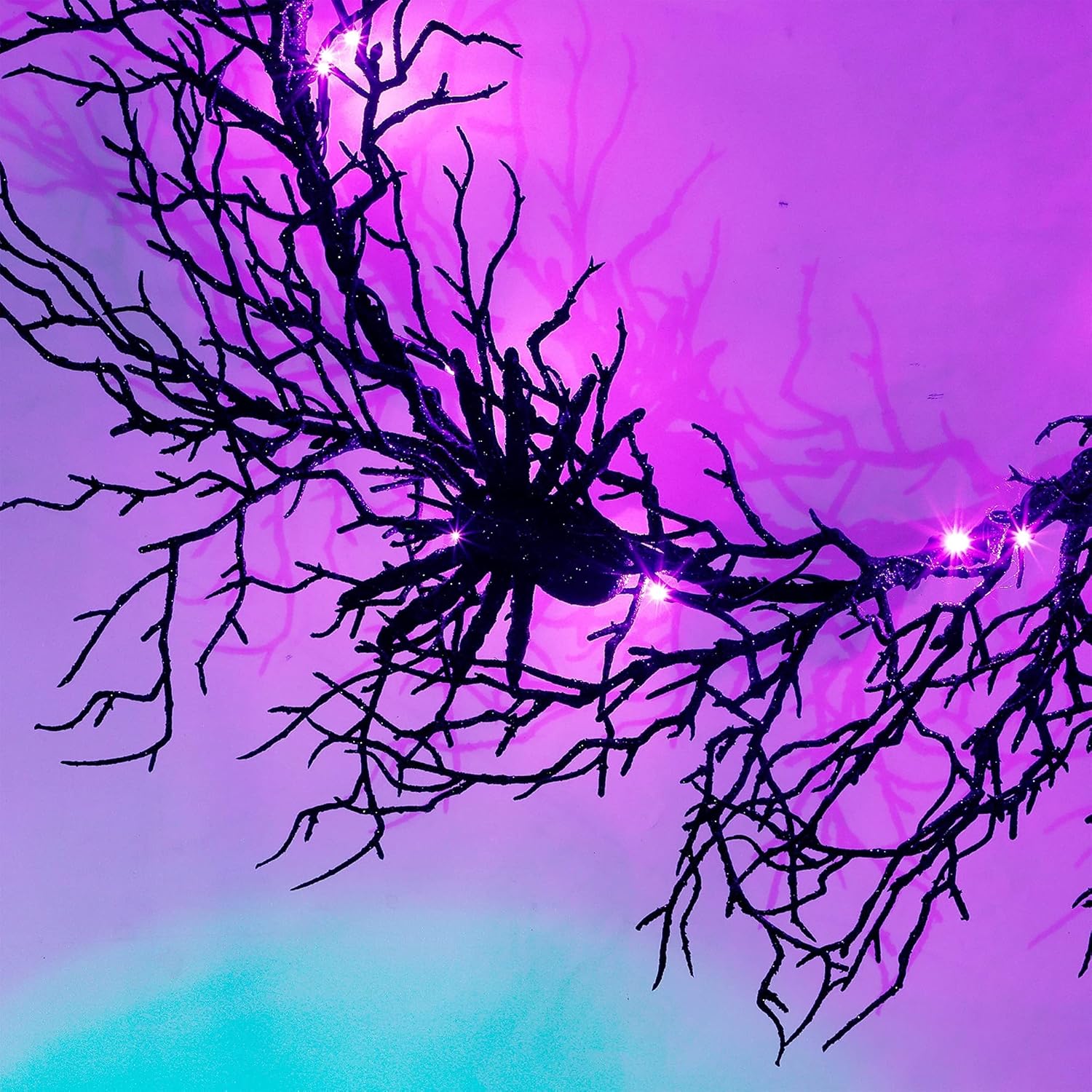 • Unique Design: Our wreath ornament is made of excellent quality coral branches. Three realistic spiders provide a terrific atmosphere, look great with purple lights in the evening.