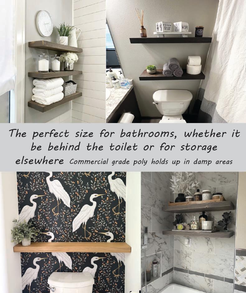 • Elevate Your Space with Rustic Charm: Transform your living room or any space with our large floating shelves for wall. These 30 inch floating shelf beauties, crafted from natural wood, add a touch of rustic warmth and provide ample display space for your cherished items. This size is perfect for behind the toilet and bathroom organization.