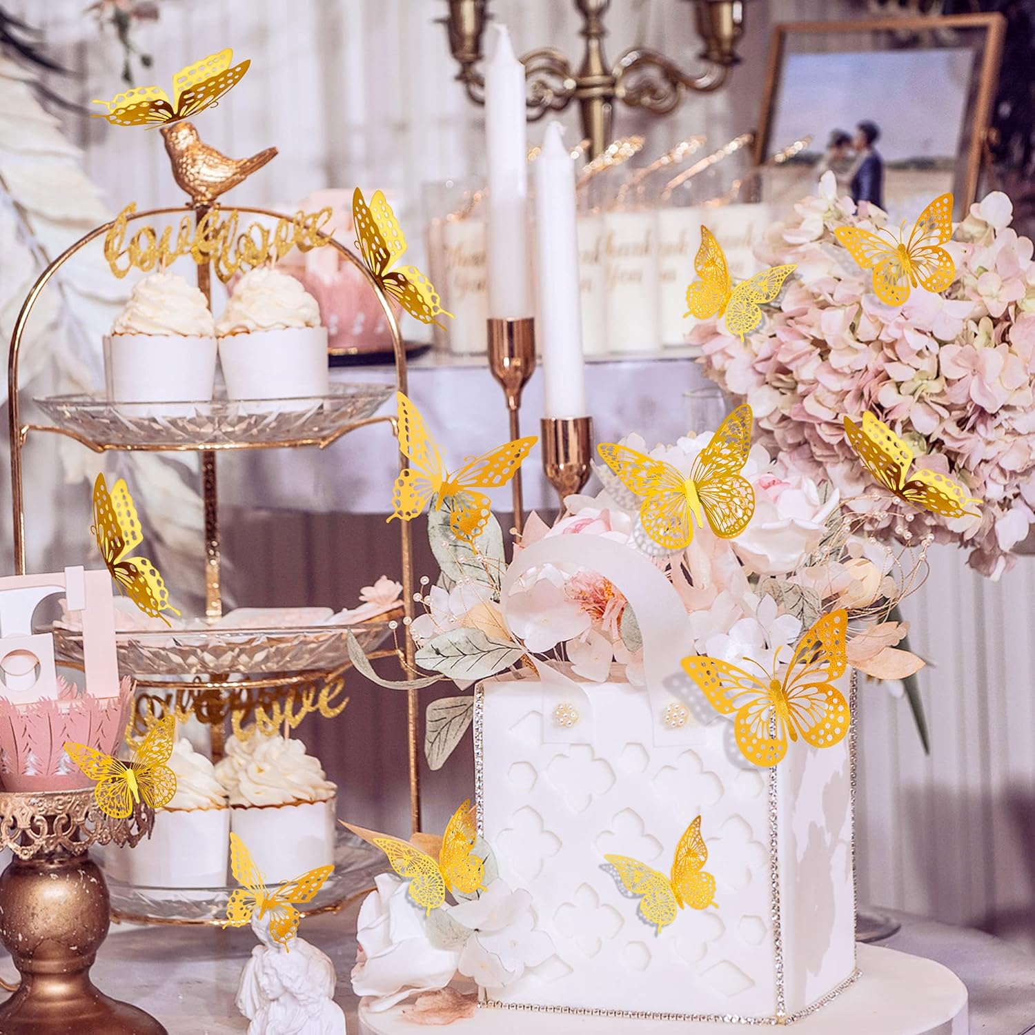 SAOROPEB 3D Butterfly Wall Decor - 48 Pcs, 4 Styles, 3 Sizes, Gold Butterfly Decorations for Birthday & Party Celebrations, Removable Stickers