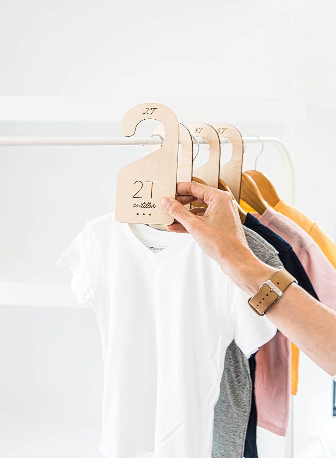 • WITH NO STICKERS OR PAINT that will wear off and make your toddler organizer unreadable, our toddler size closet dividers have DEEP, DARK ETCHING against NATURAL BIRCH WOOD (earth-friendly, no wasteful plastic!) making their beautiful lettering stand out wonderfully. HIGH-QUALITY and aesthetic, the classic design of our REUSABLE toddler clothing dividers makes them the perfect kids room decor for every toddler. And unlike circular hanger tags, they ALWAYS STAY UPRIGHT.