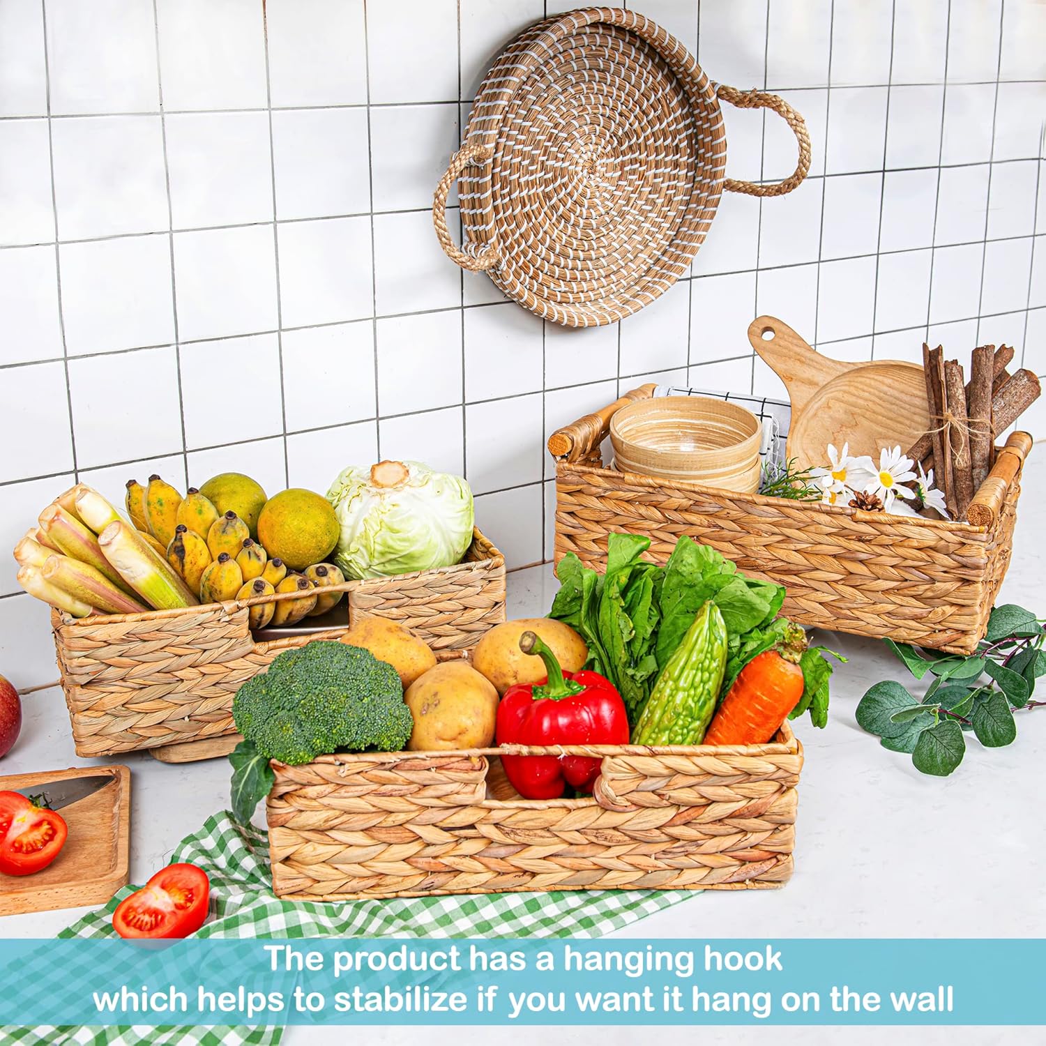 • ✅ Decorative Wicker Baskets: Natural water hyacinth basket is an easy and affordable way to change the style of your home. With their natural design, the wicker basket makes nice neutral backdrops and can brighten your day as well as impress your guests.