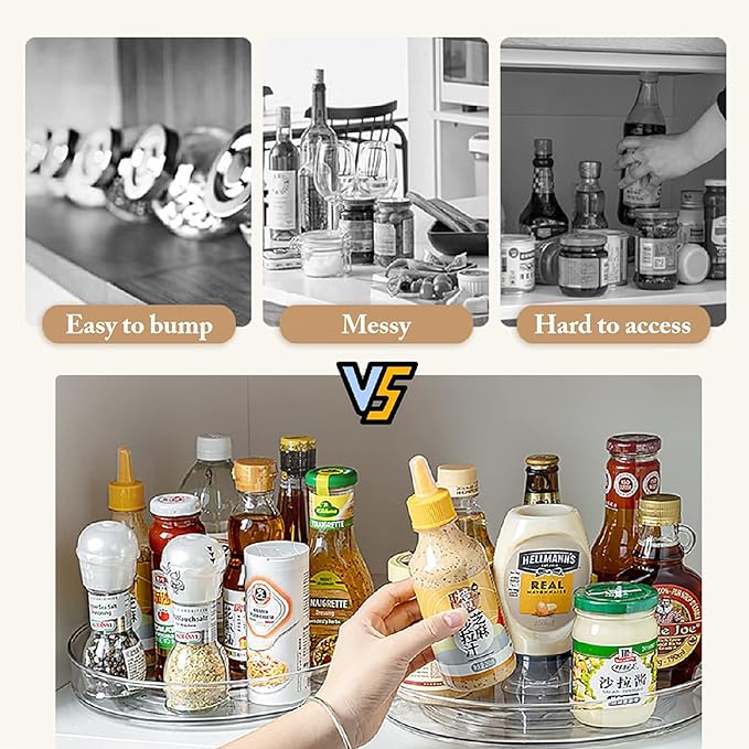 • 3. Maximize Space:This rotating Lazy Susan will allow you to maximize valuable storage space and keep your stuff within easy reach. Say goodbye to messy kitchens and cabinets, make better use of every space in your home. Clean, organized life starts here.