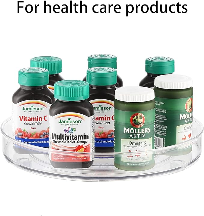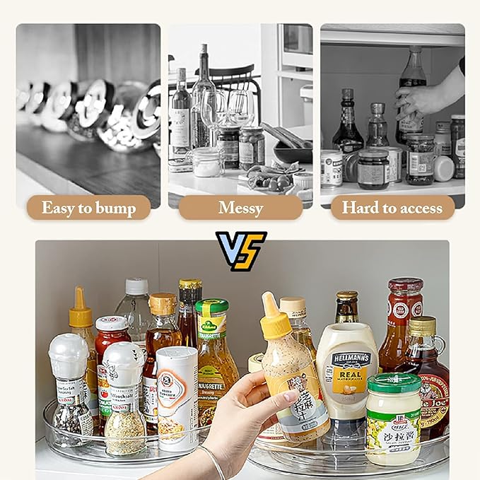 • Large Capacity : Size and capacity meet daily needs, increase turntable capacity, which is convenient to access what you what. The set of 2 transparent 10.5" deep turntable cabinet organizer provides storage and organization for the kitchen, outdoor dining room table, or countertop.
