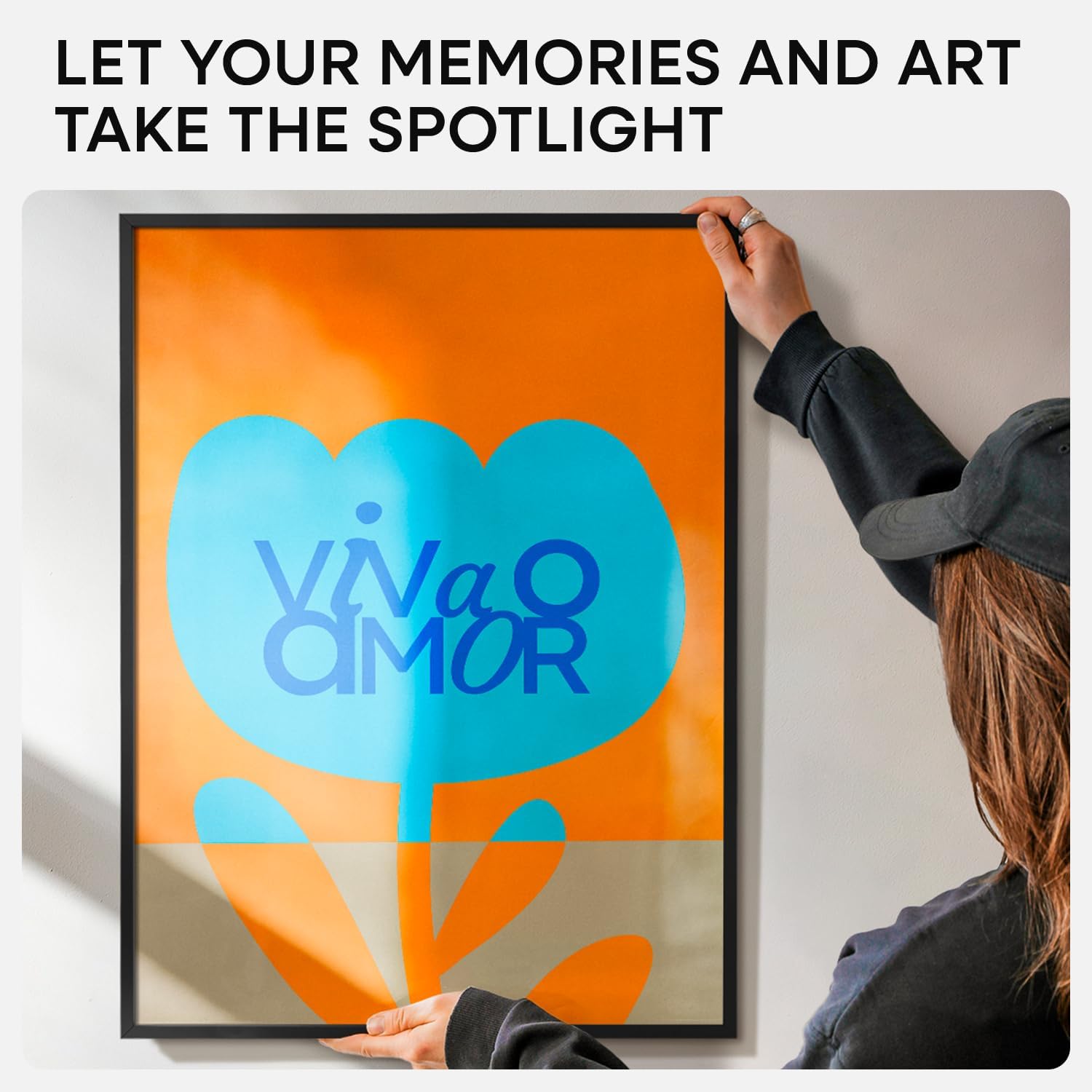 • MATTE BLACK. CLEAN AND MODERN. Defined by sharp edges and a smooth matte finish, this black aluminum frame suits contemporary, minimalist, or industrial interiors. A versatile choice for photos, prints, or posters.