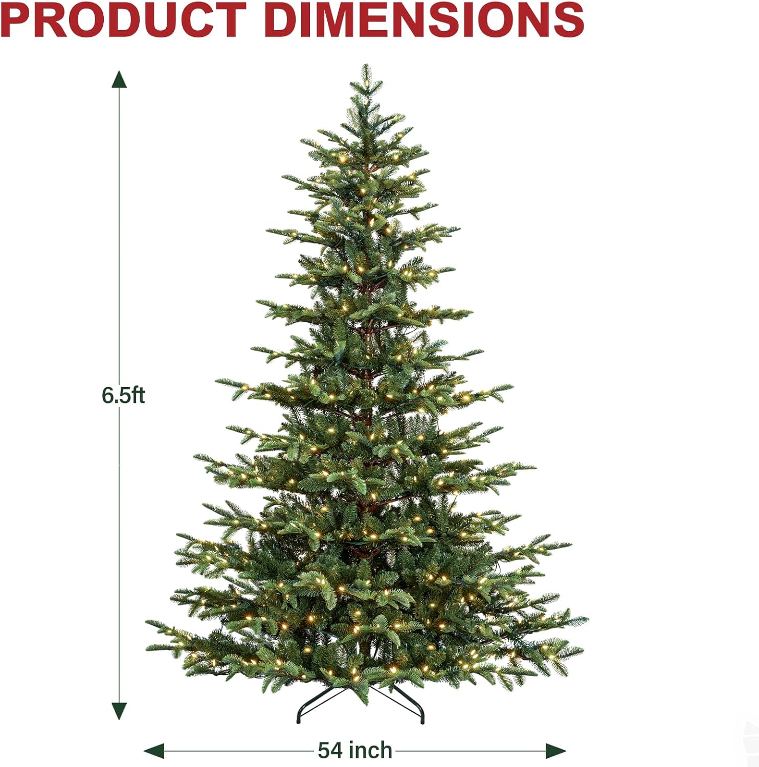 • NATURAL & Full LOOK: Measures 6 feet tall, 54 inches diameter at the base, all metal construction with sturdy folding metal tree stand. Fluffing the typical Christmas tree may take 1 hour the first time, but when fully shaped, for a splendid display.