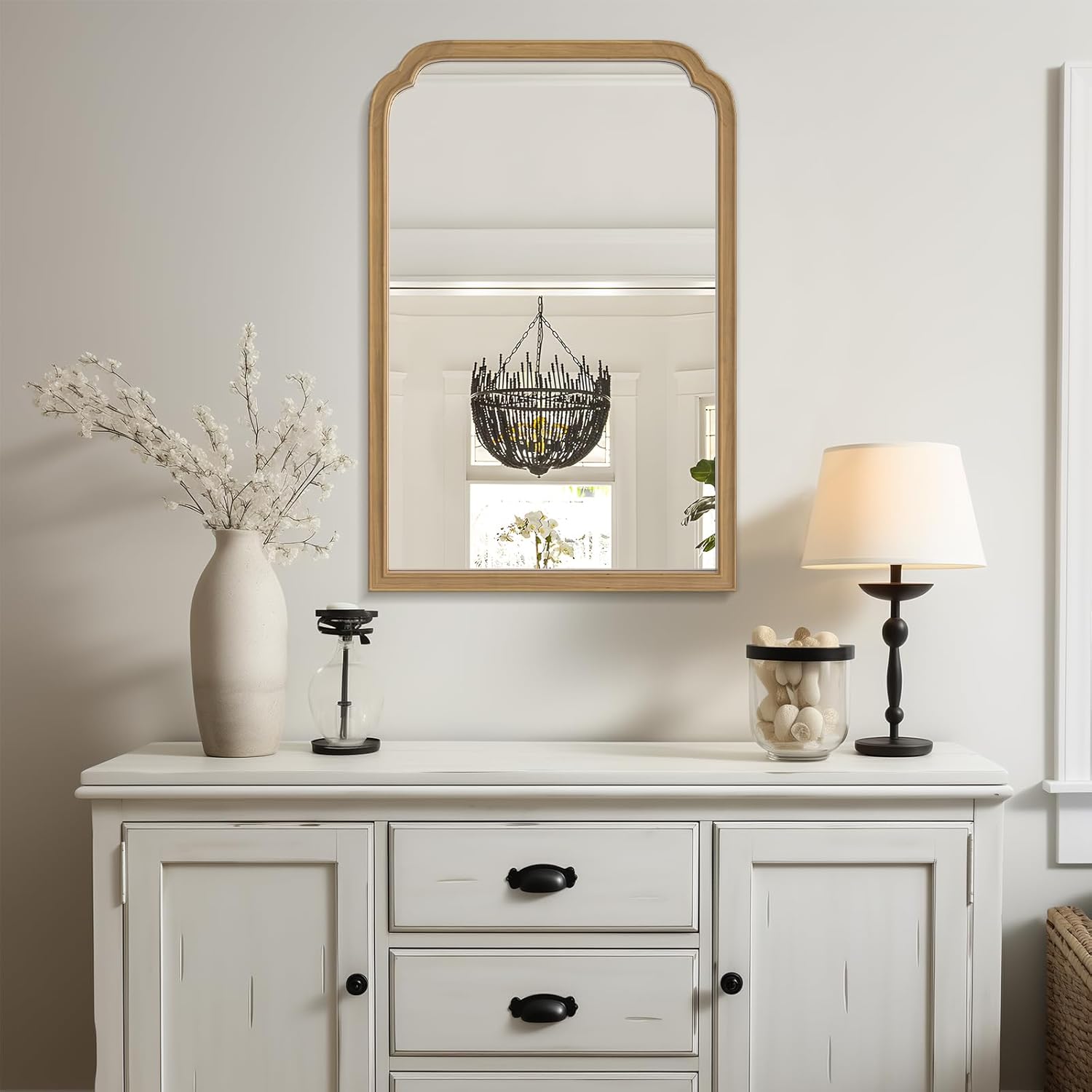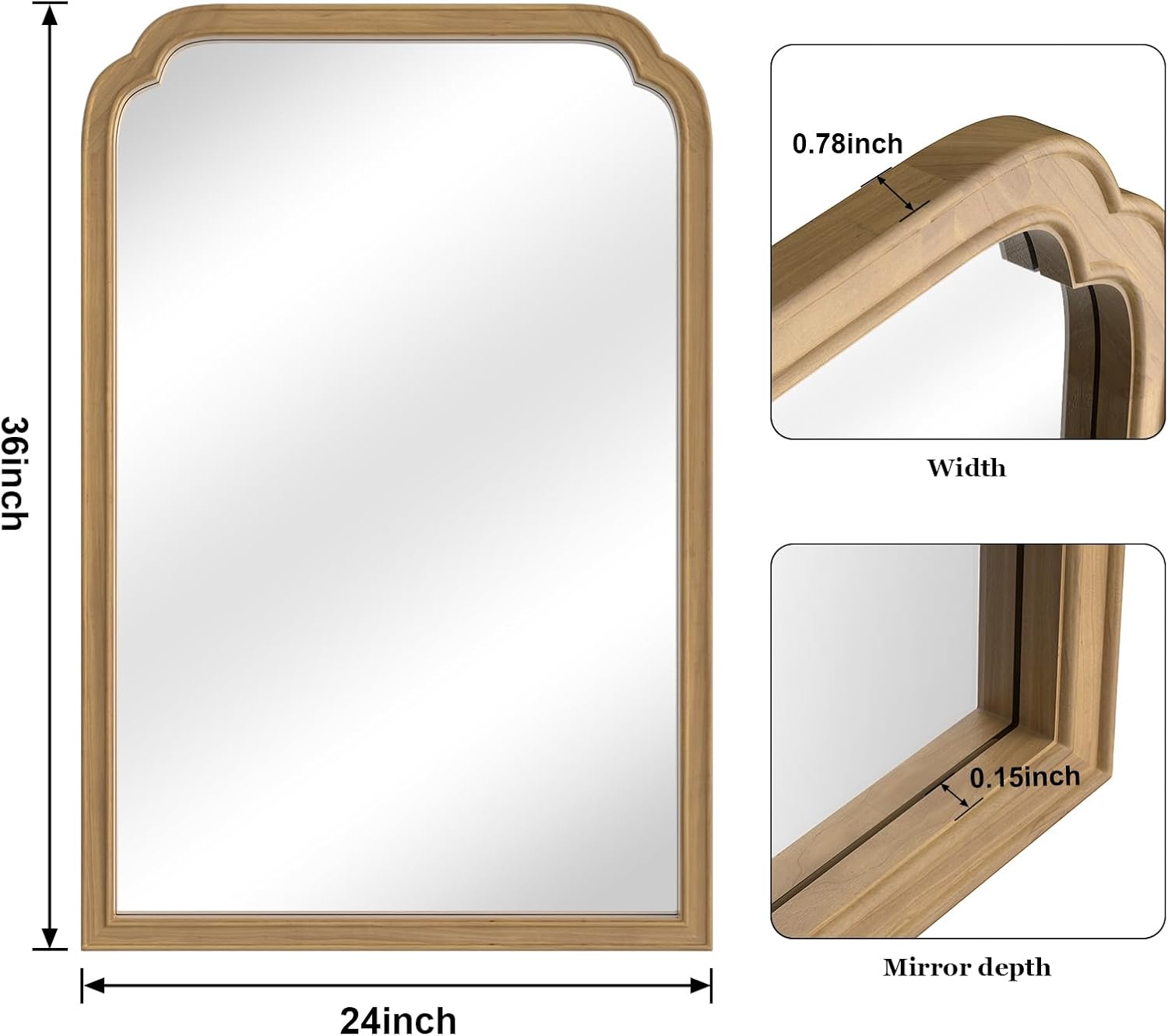 WallBeyond Wood Bathroom Mirrors for Wall Mounted, 24" x 36" Rustic Wood Frame Wall Mirrors Decorative for Living Room or Bedroom Vanity Mirror (Natural Color)