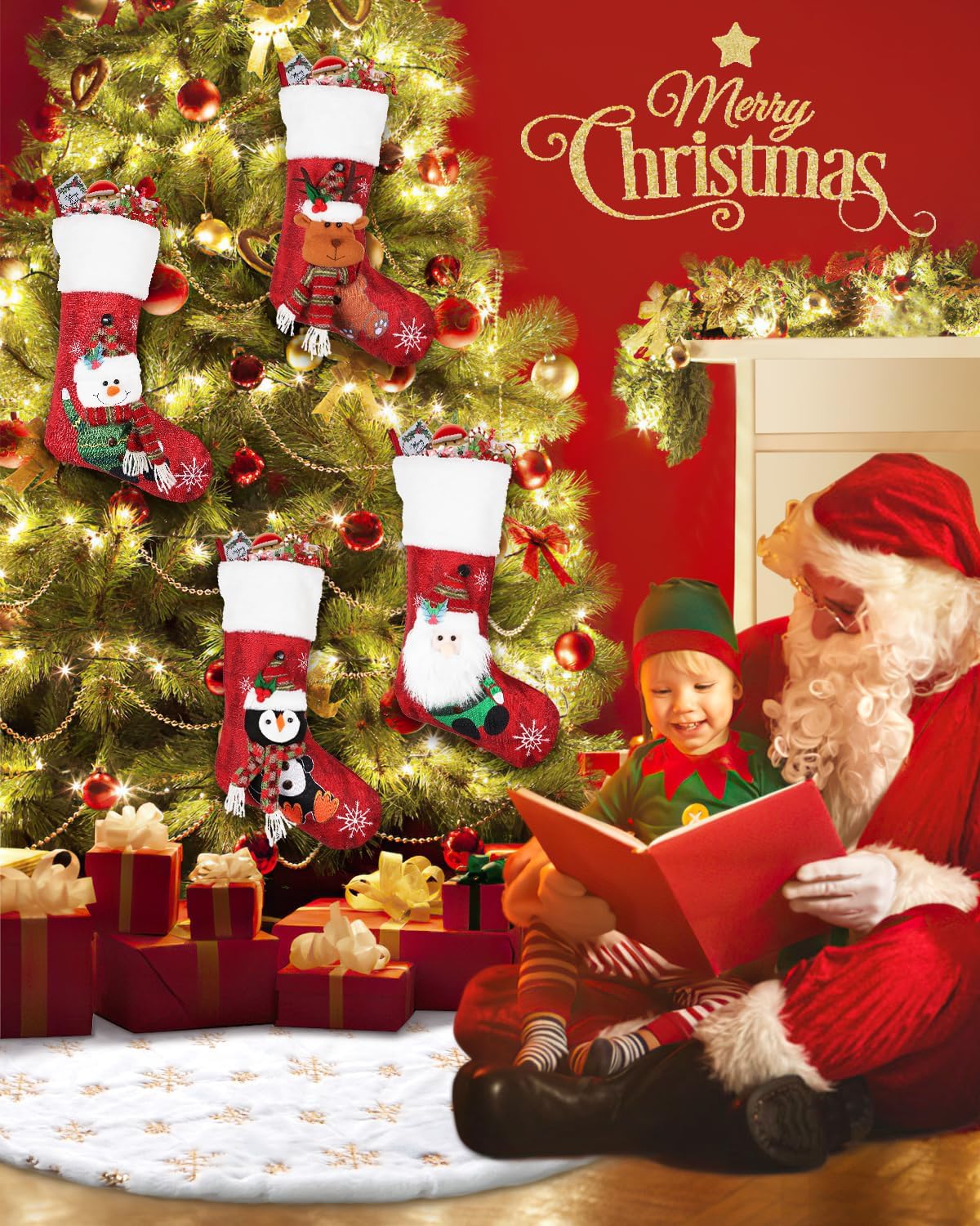 • Easy to install: The Christmas tree skirt has three seam magic wands, so they can be installed in a few seconds. You can use it to fix the Christmas tree skirt around the base of an artificial or real Christmas tree