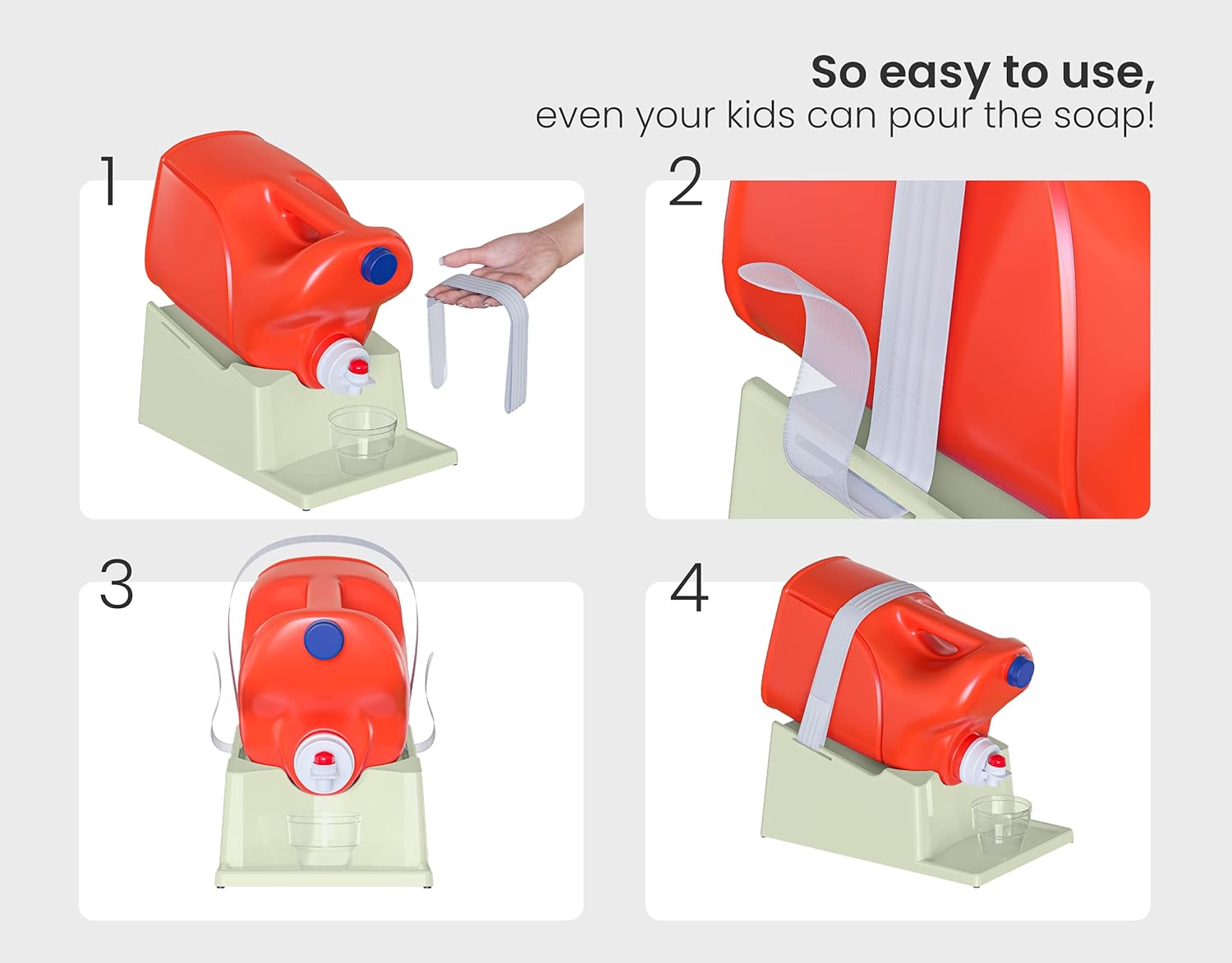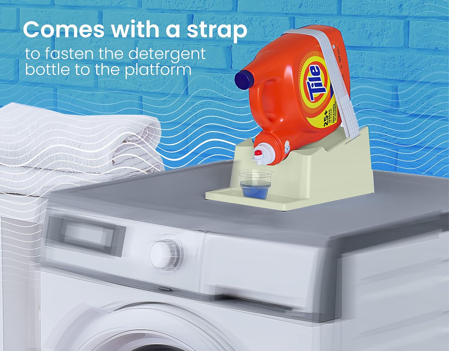 • [Safe Attachment:] The laundry detergent shelf or holder features a secure strap that firmly attaches and ensures your detergent bottle stays in place and minimizing the risk of accidental falls and spills.