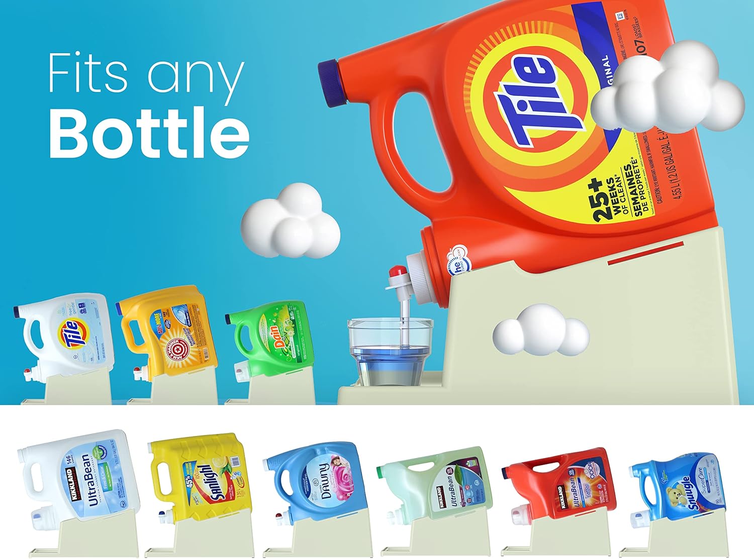 • [Versatile Fit:] The liquid laundry detergent holder station's optimal size (7.9"L x 12.2"W x 5.5"H) accommodates various bottle sizes, providing a perfect fit for most detergent containers without taking up too much space. (Laundry Soap, Cup, and Bottles NOT Included)