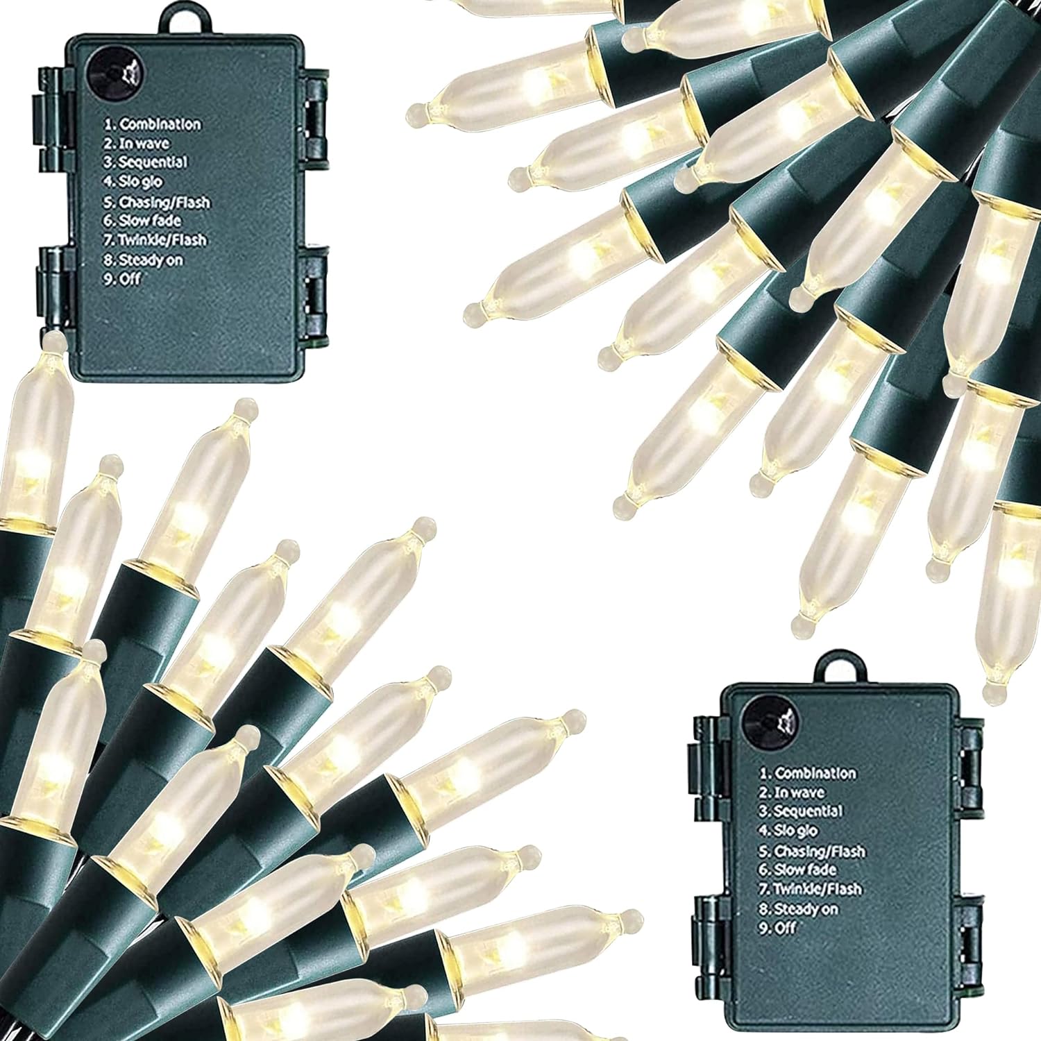 Dazzle Bright Battery Operated Christmas Lights, 2 Pack 32Ft 100LED Clear Mini String Lights Waterproof with 8 Modes for Xmas Indoor Outdoor Yard Holiday Wedding Decorations (Warm White)