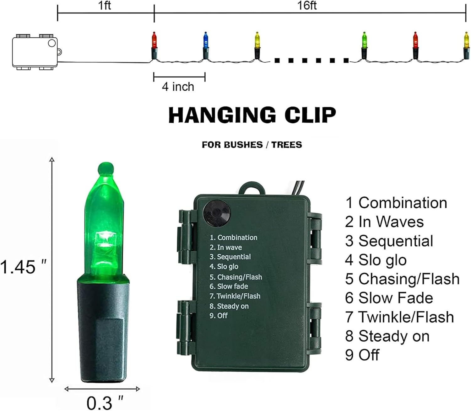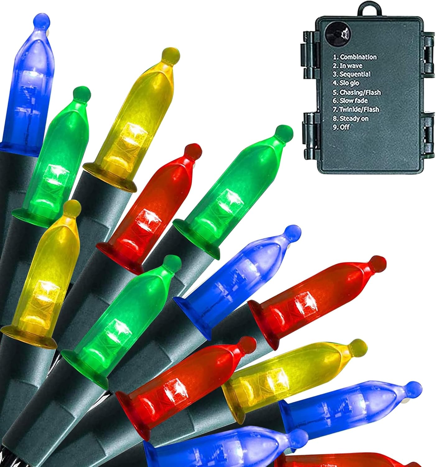• 8 Lighting Modes: Dazzle Bright mini string lights has 8 different lighting methods, including combination, in wave, sequential, slo glo, chasing/flash, slow fade, twinkle/flash, steady on. Press the button on the battery box to select the lighting mode you like.