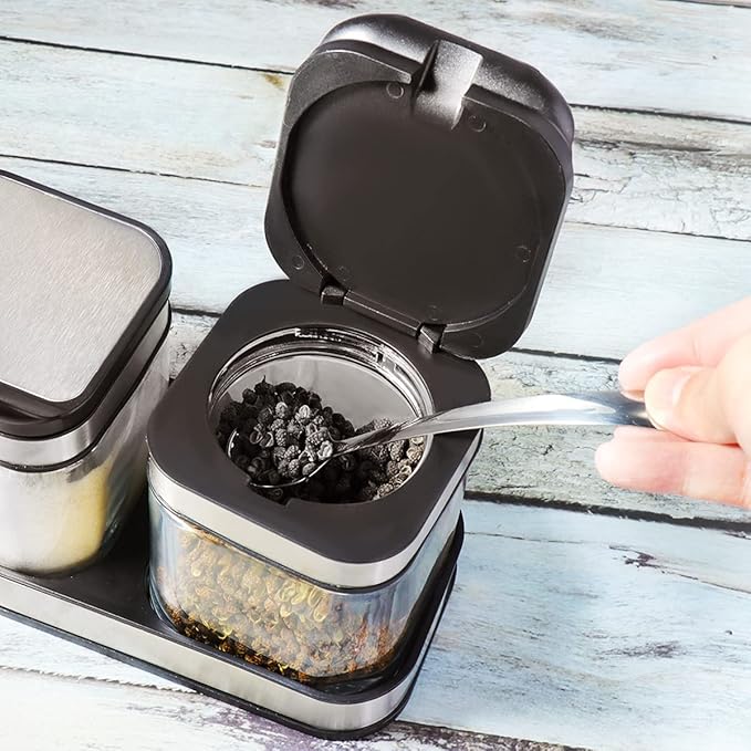 • Sugar Container with spoon and cover, small stainless steel spoon can go in the little slit in perfectly. It really helps with controlling the amount of seasoning when you are cooking.