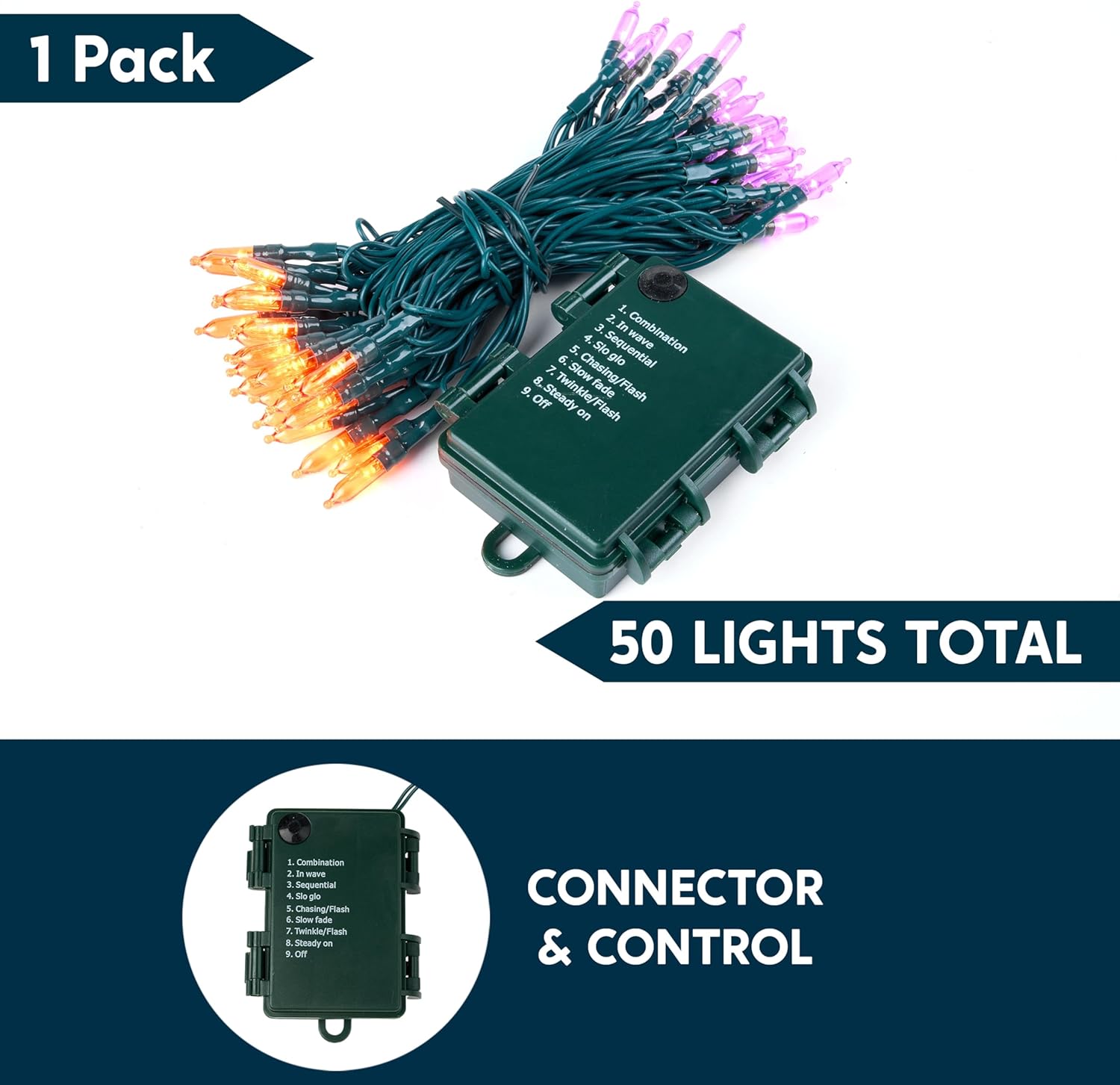 Joiedomi 16.3FT Orange&Purple Halloween Lights,50 Count Battery Operated Christmas String Tree Fairy LED Lights with 8 Modes,Multifunction Green Wire with Timer for Xmas Decor Party Holiday House