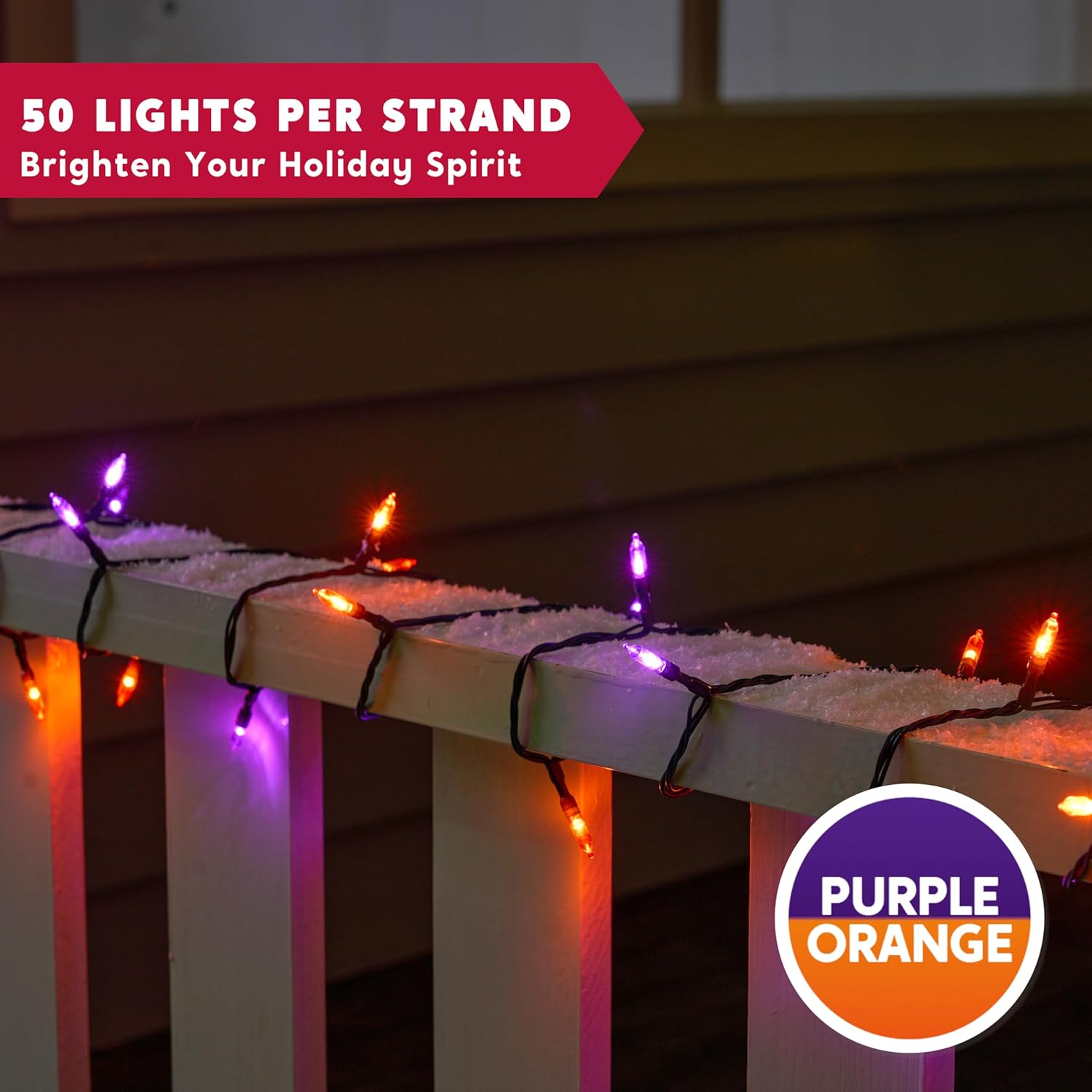 • SUPER VALUE.This orange and purple Halloween lights set includes battery powered string light. Each set has 50 counts of Orange and Purple LED bulbs and measures at 17.3ft. The bulbs interval is at 4 inches and its individual size is 3mm*16mm.