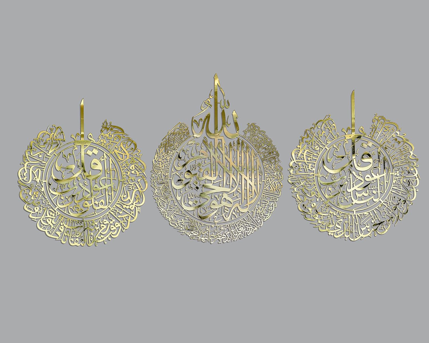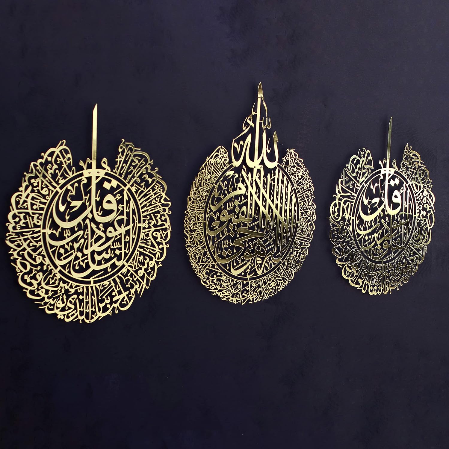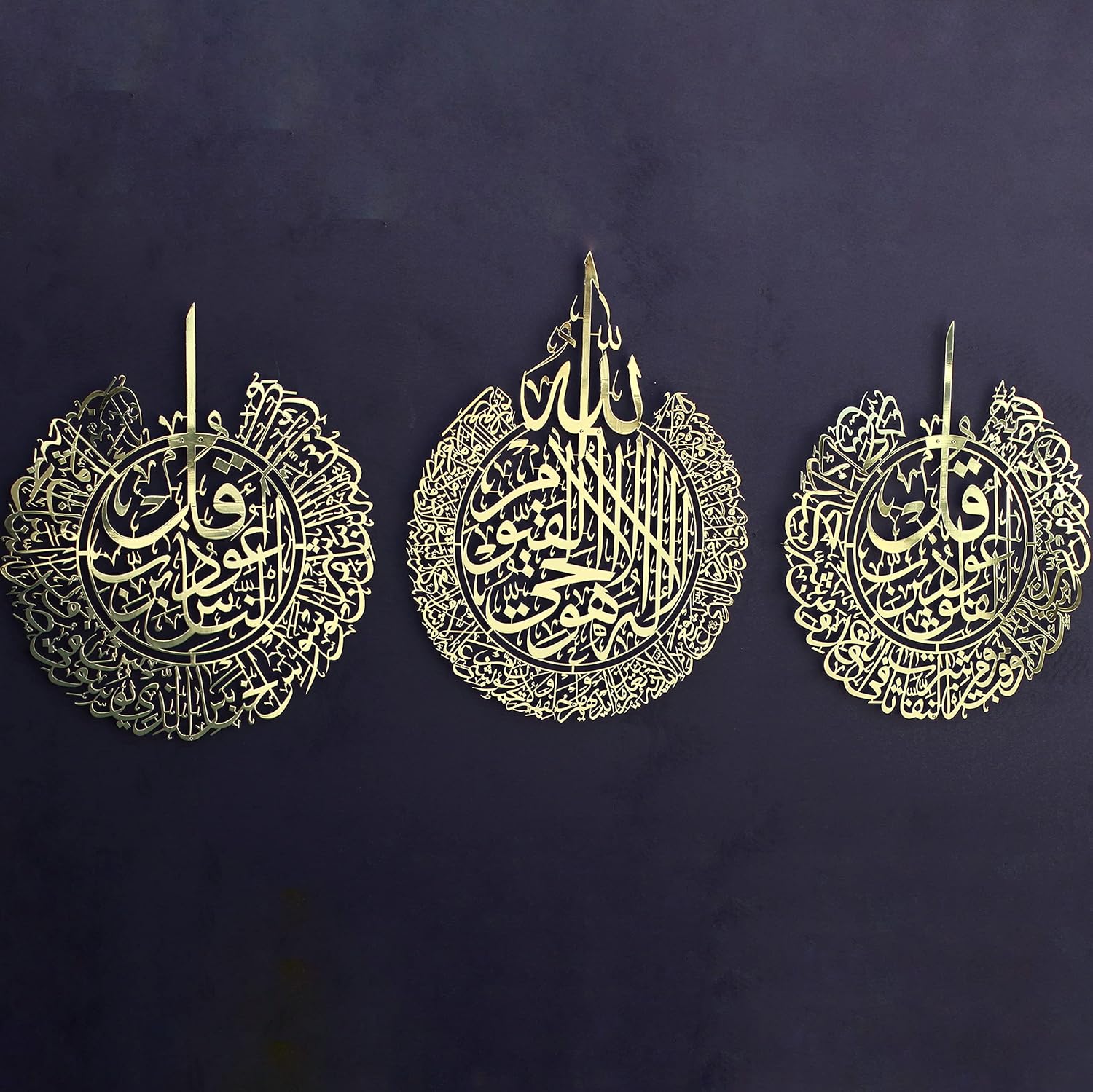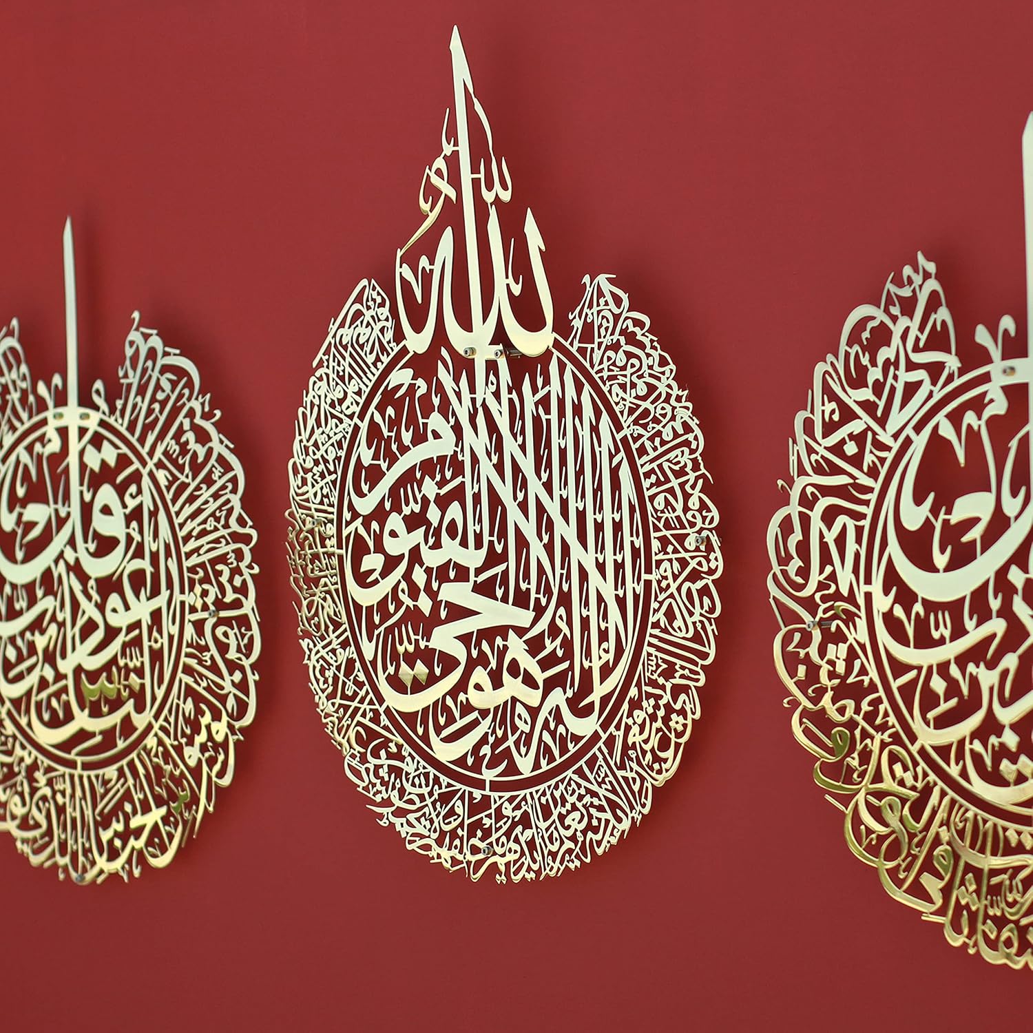 iwa concept Ayatul Kursi, Surah Al Falaq and Surah An Nas Islamic Metal Wall Art, Quran Verse Arabic Calligraphy Decor, Islamic Decorative Gift for Muslims during Ramadan (Shiny Gold, Large)