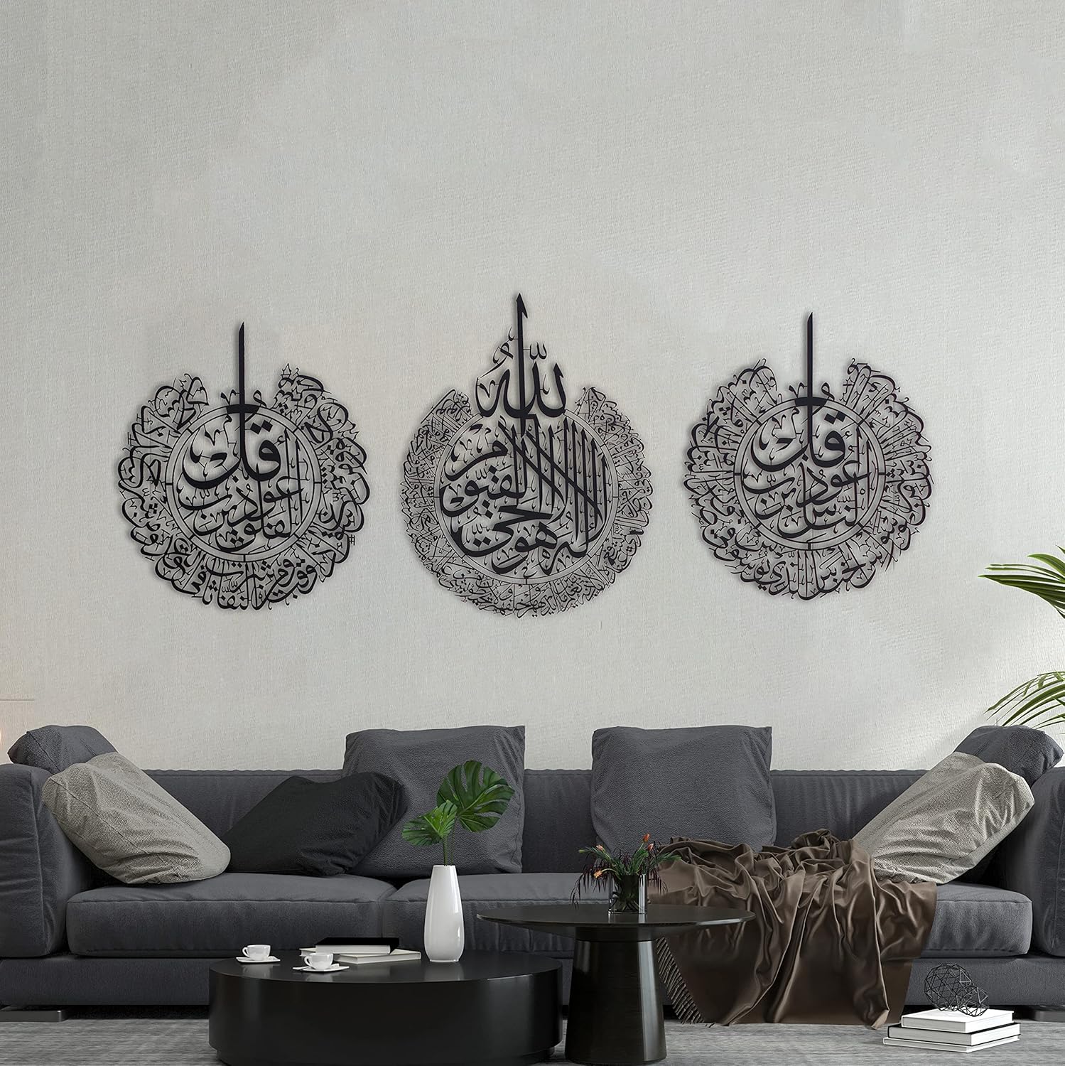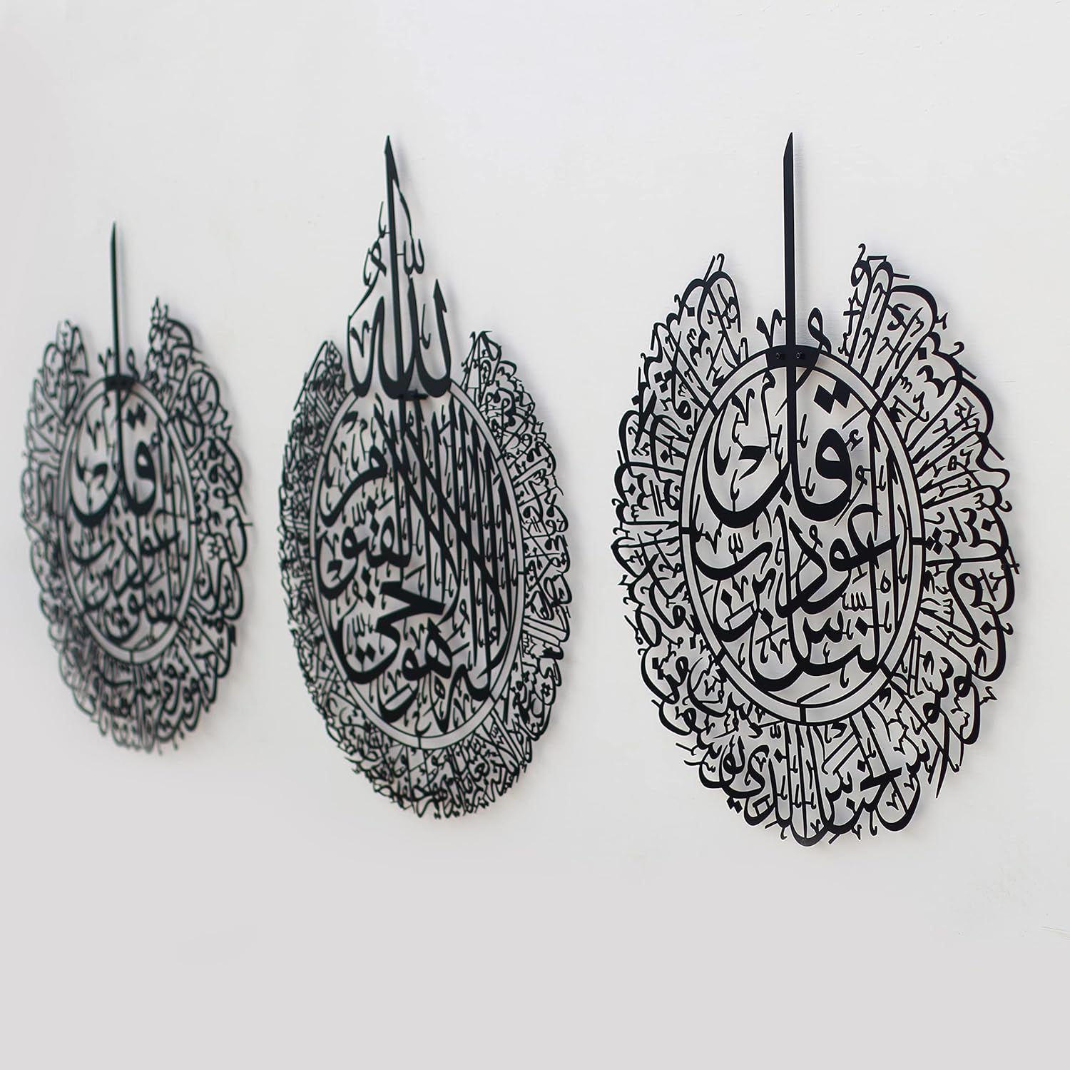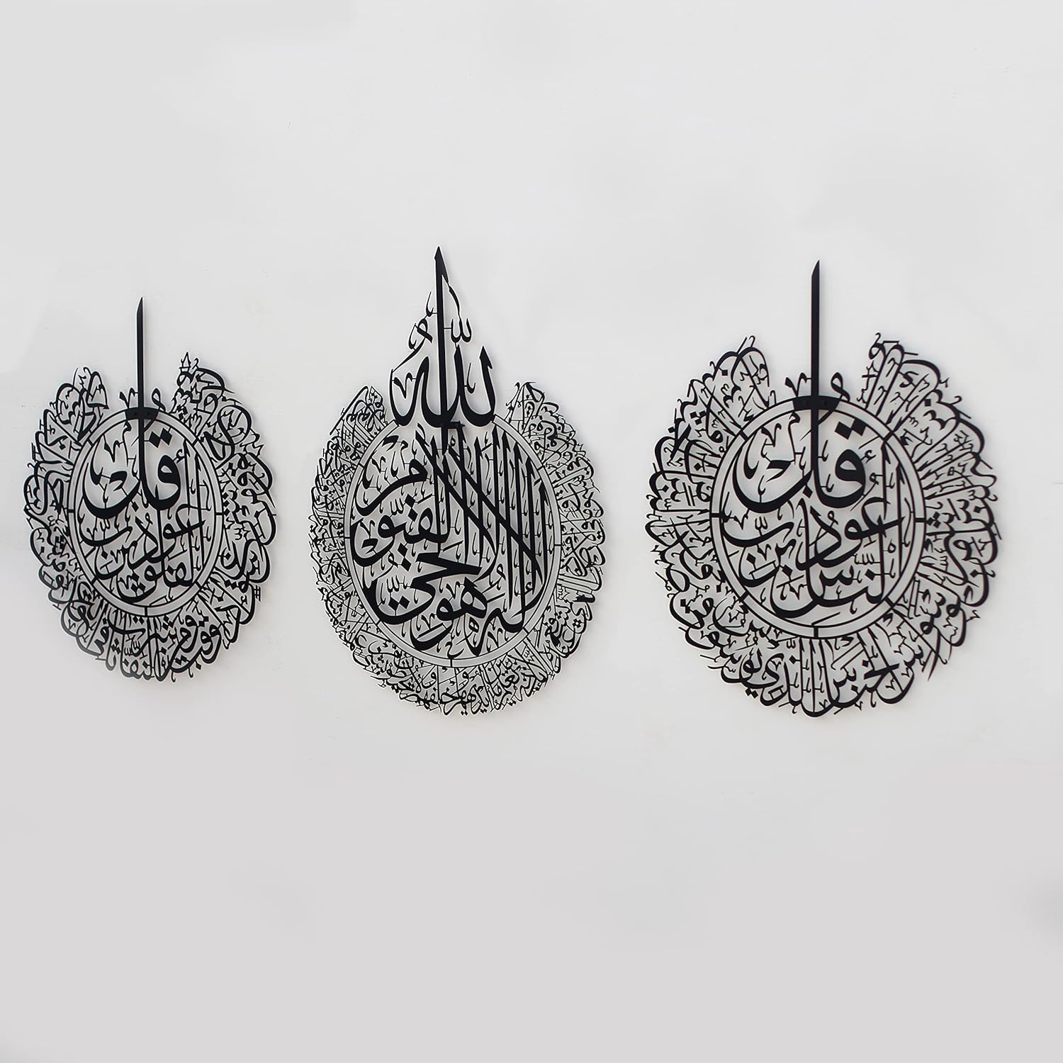 iwa concept Ayatul Kursi, Surah Al Falaq and Surah An Nas Islamic Metal Wall Art, Quran Verse Arabic Calligraphy Decor, Islamic Decorative Gift for Muslims during Ramadan (Black, XLarge)