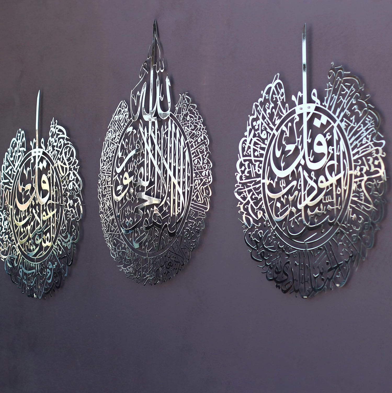 IWA CONCEPT Metal Set of Ayatul Kursi, Surah Al Falaq and Surah An Nas | Islamic Ramadan Wall Decorations | Modern Muslim Housewarming Gift | Arabic Calligraphy | Quran Wall Art | (Shiny Silver,