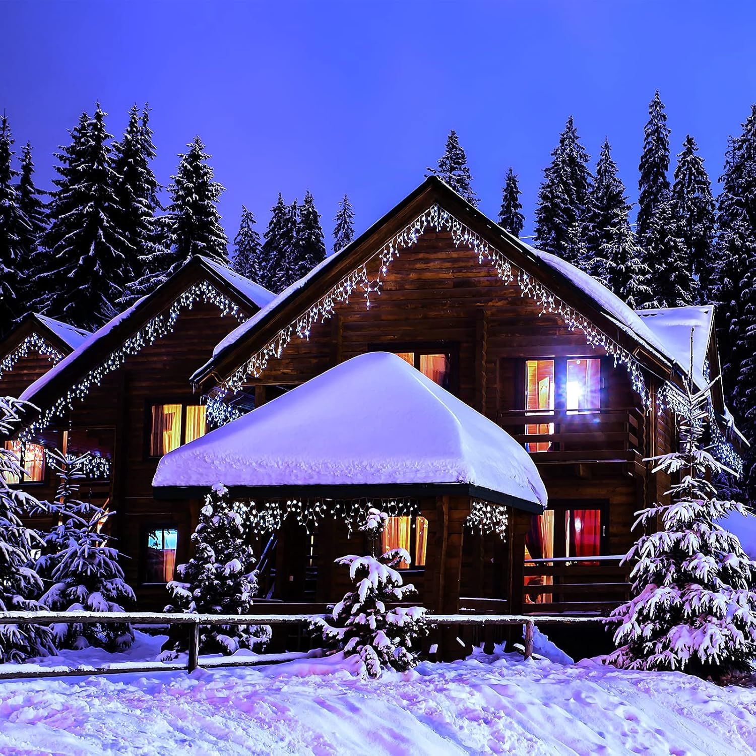 • 【Safe Use LED Icicle Christmas Lights】400 LED icicle lights,each Christmas icicle light adopts premium clear wire with insulation coating, which is corrosion-resistant, aging resistant. Strictly tested and meets the US requirements of string lights UL safety standards to ensure & maximize the safety. 29V low output voltage makes it safe enough for use. IP44 waterproof for indoor and outdoor use.
