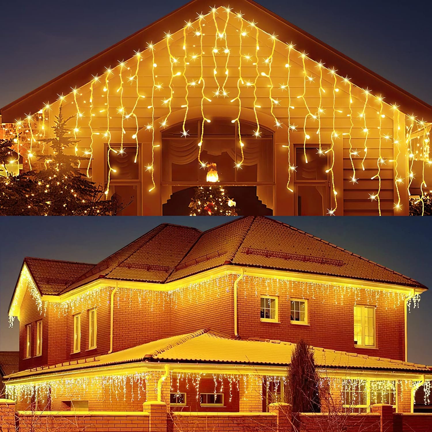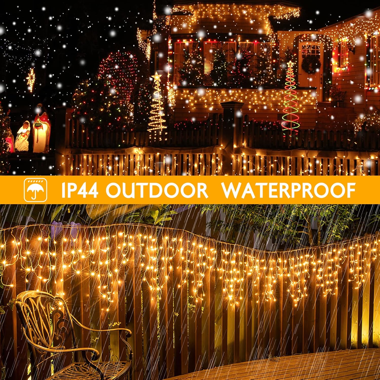• 【Safe Use LED Icicle Christmas Lights】400 LED icicle lights,each Christmas icicle light adopts premium clear wire with insulation coating, which is corrosion-resistant, aging resistant. Strictly tested and meets the US requirements of string lights UL safety standards to ensure & maximize the safety. 29V low output voltage makes it safe enough for use. IP44 waterproof for indoor and outdoor use.