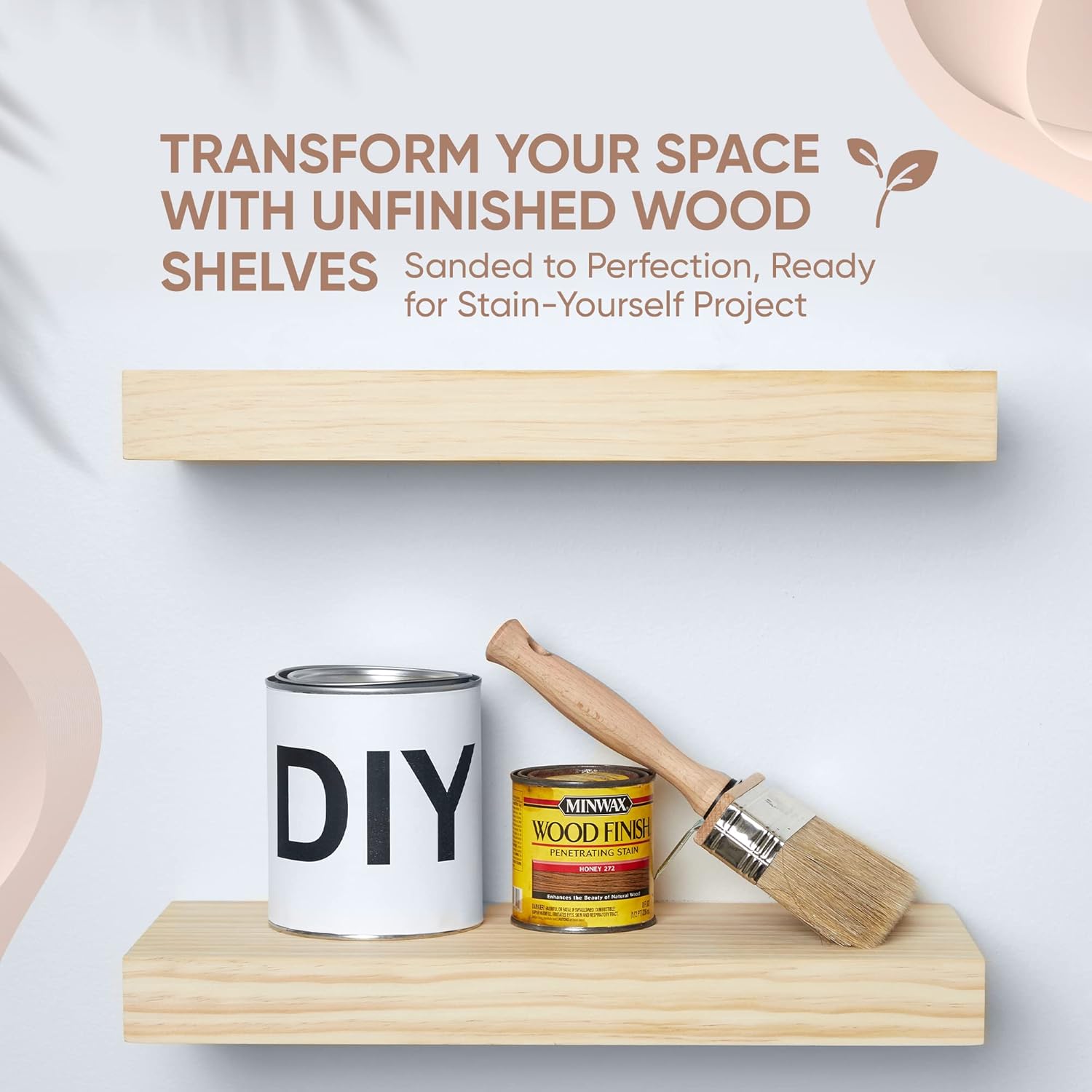 • AUTHENTIC WOOD GRAIN - Enjoy the timeless elegance of real wood. Handcrafted from the finest 1.75" Thick natural pine wood measuring 16" Wide x 6.5" Deep x 1.75". Our shelves highlight the inherent charm and durability of high-quality wood. Each Shelf reveals its unique character of knots and natural wood grain; each ledge is a little different but equally stunning.