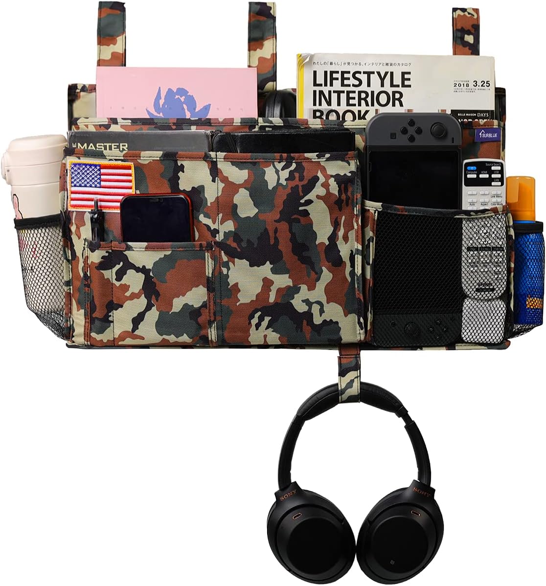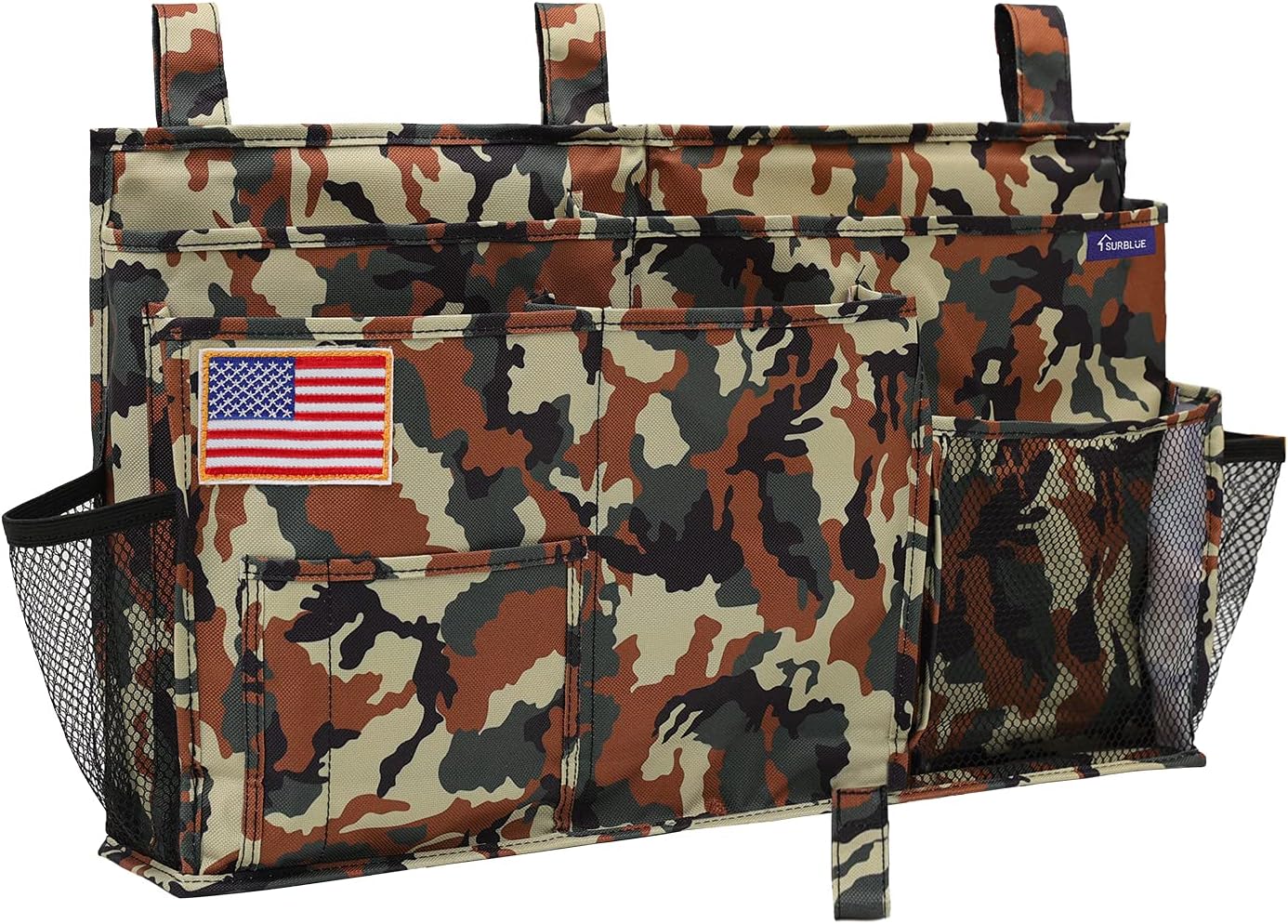 Surblue Bedside Caddy Hanging Organizer Storage Bag Pocket for Bunk, Hospital, College Dorm Rooms, Baby Bed Rails, Camp - 8 Pockets (Large, Jungle)