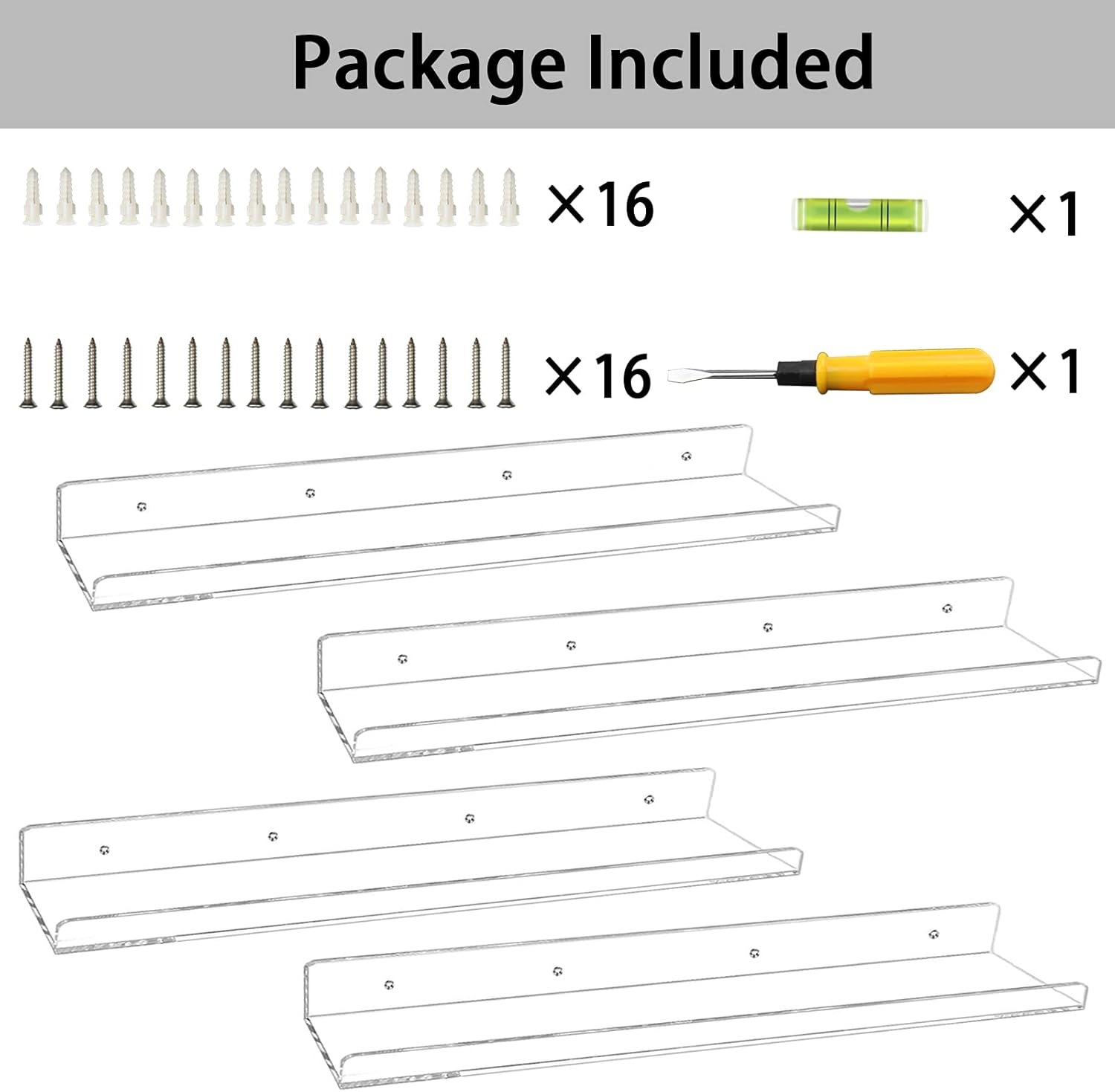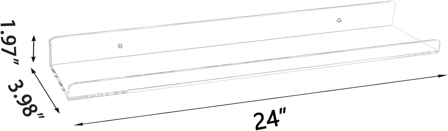 Weiai Clear Acrylic Floating Shelves 24 inches, Wall Bookshelf for Kids, Transparent Book Shelf Ledge for Wall, Set of 4