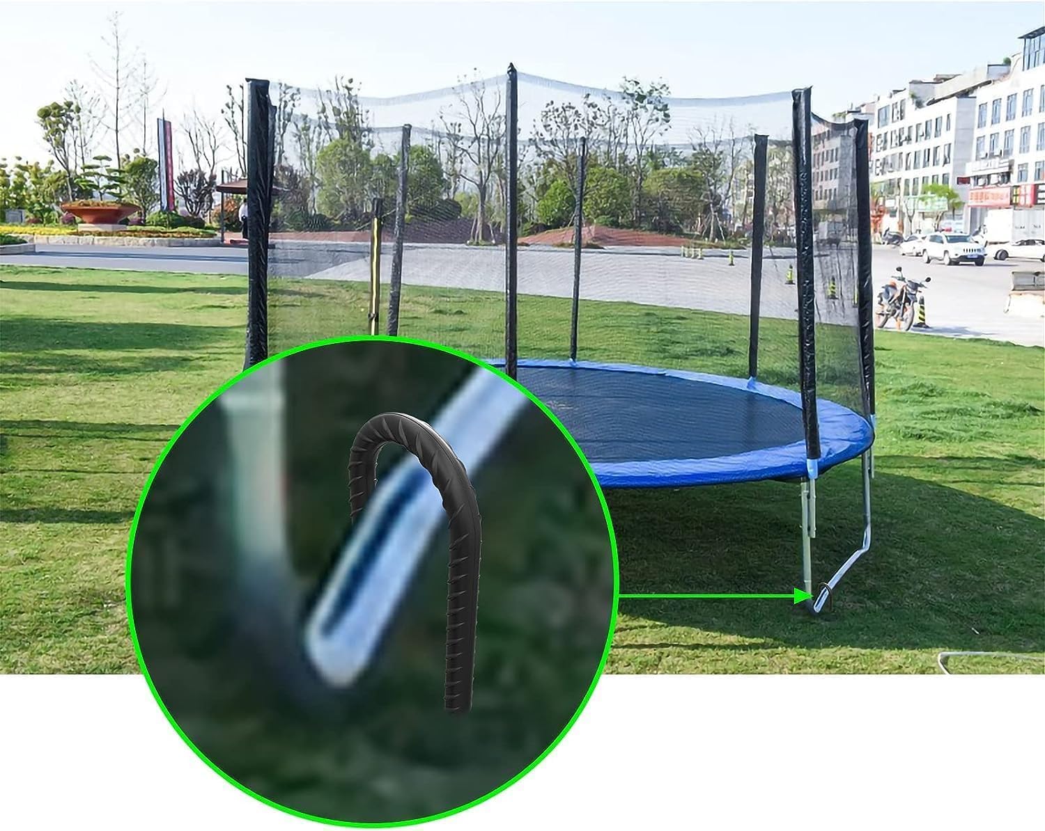 • HEAVY DUTY TRAMPOLINE STAKES- 10mm diameter and 16 inch long, 2 inch inside diameter extra heavy duty Ground Anchors. Made of strong galvanized heavy duty steel rebar that is reliable and long-lasting in outdoor used.