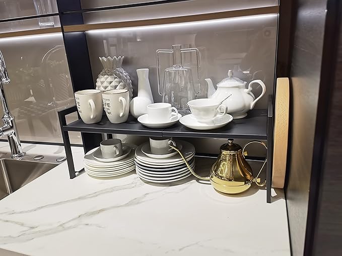 • Multi-Purpose Functionality: Designed with a modern aesthetic, this countertop shelf can be used for storing kitchen items, books, office supplies, personal collections, and more, making it a versatile and practical addition to any space