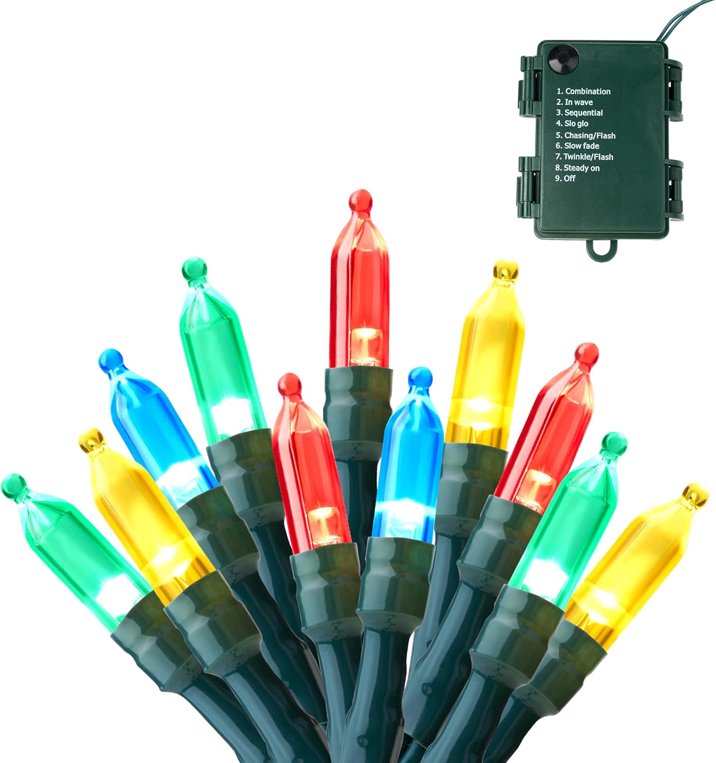 • SUPER VALUE.This Christmas lights set includes 2 packs of battery powered string light. Each set has 50 counts of Multicolor LED bulbs. Each set has 17.3 feet wire length and 16.3 ft lighted length.with 4 inch light spacing. The bulbs interval is at 4 inches and its individual size is 3mm*16mm.