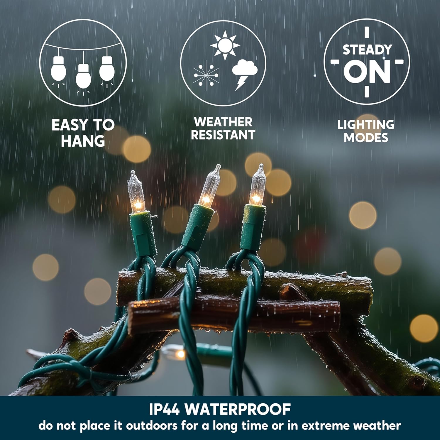• UL588 CERTIFIED FOR INDOOR & OUTDOOR SAFETY - Ensure holiday peace of mind with our string lights, rigorously tested to meet US UL safety standards. The IP44 waterproof design and durable construction withstand rain and snow, making them perfect for Christmas tree decorations, garden, patio, and year-round use.