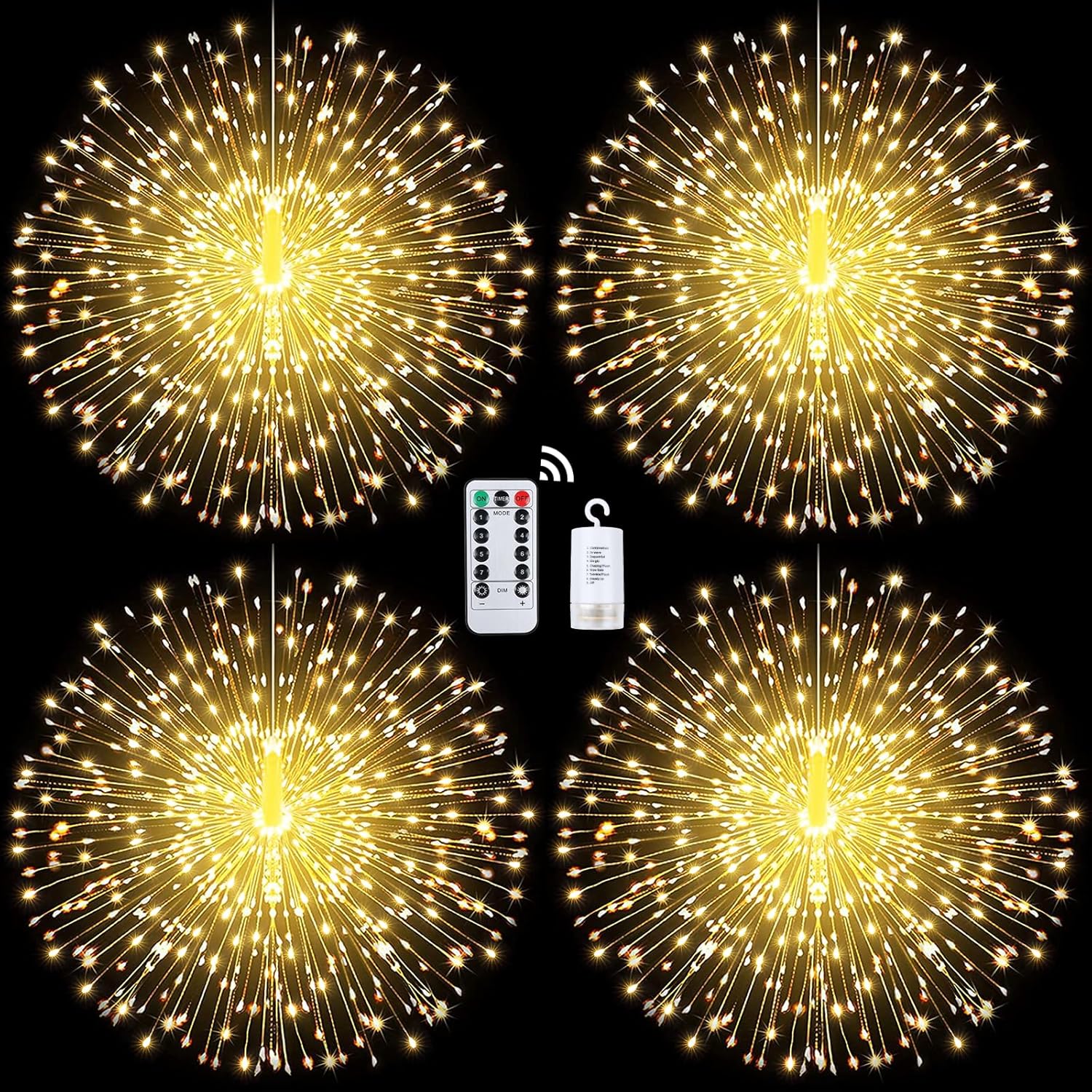 Techip 4 Pcs 225Led Lights Battery Operated Fairy Lights Copper Wire with Remote 8 Modes Wedding Hanging String Lights Christmas Decorative Lights Outdoor Indoor Decoration,Warm White