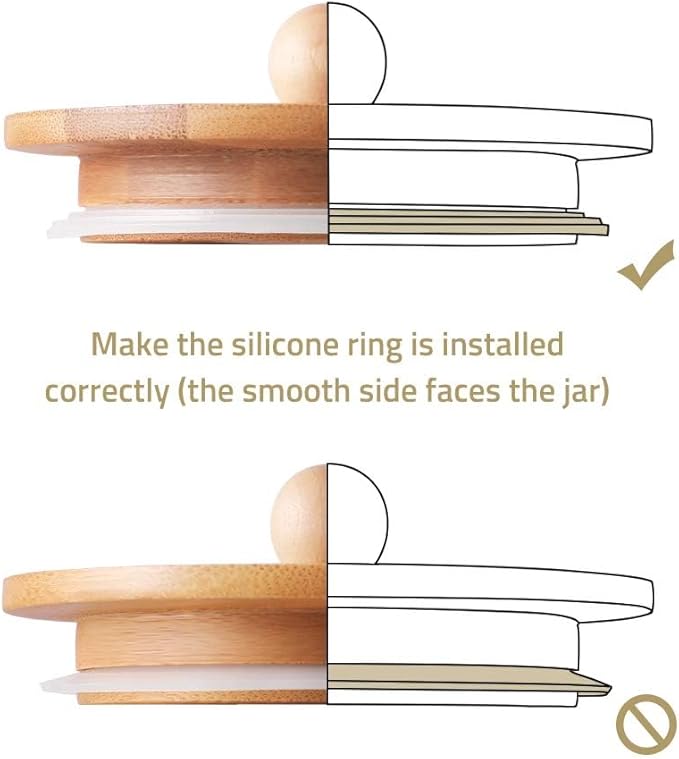 • About Silicone Ring - Make sure that the silicone ring is installed correctly (look at the second picture carefully). The natural bamboo cover has a spherical knob, which is convenient for you to pick up the cover.