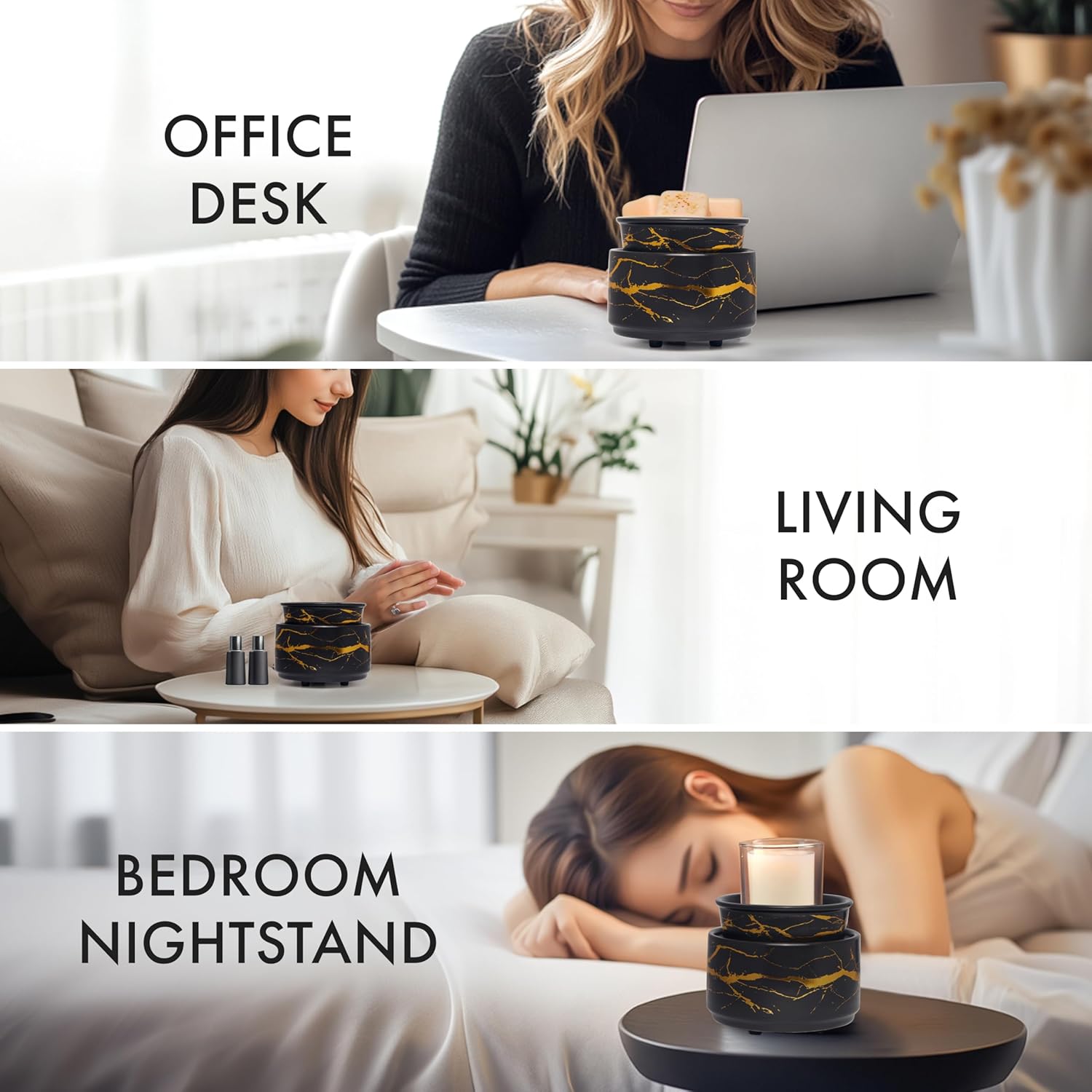 PALANCHY Wax Melt Warmer Ceramic 3-in-1 Oil Burner Electric Candle Wax Warmer Burner Melter Fragrance Warmer for Scented Waxs Home Office Bedroom Aromatherapy Gift& Décor (Black Gold)