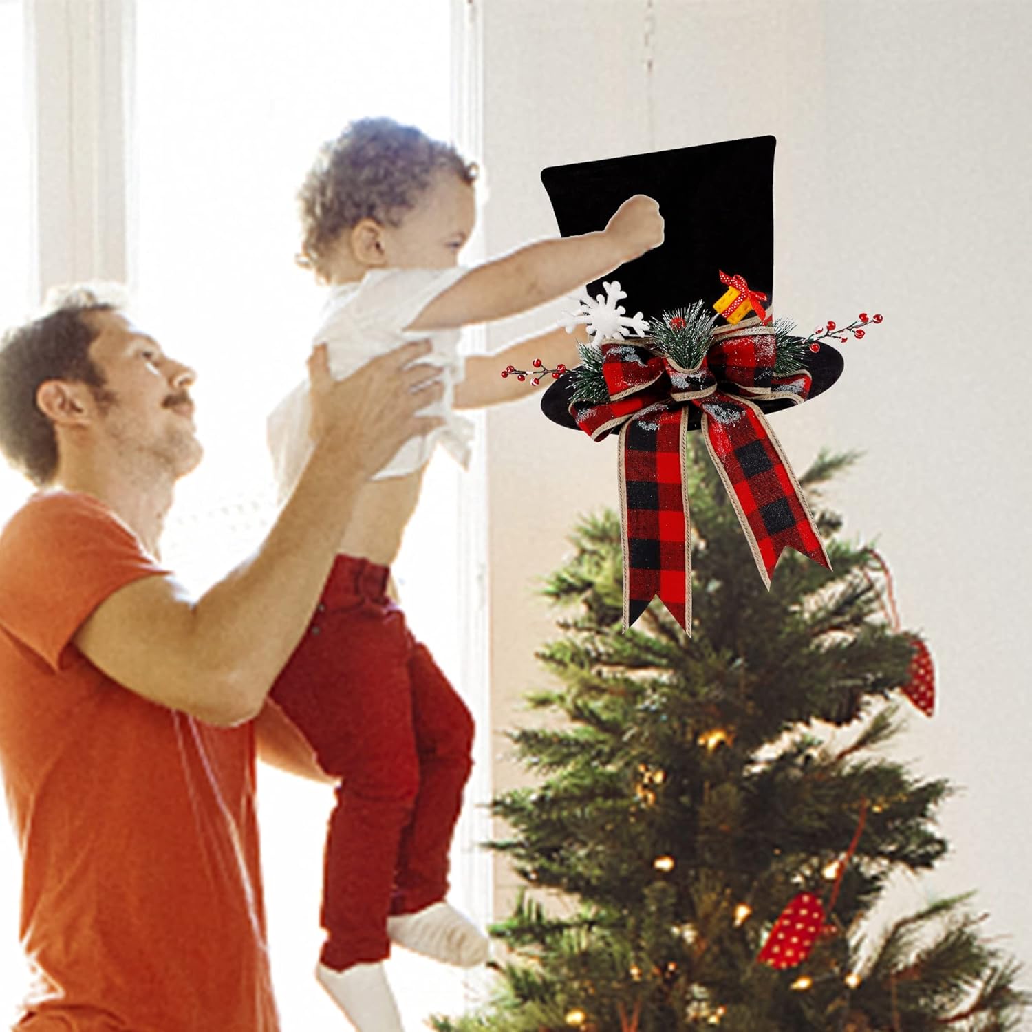 • 🎩 Christmas Tree Topper: Our velvet black top hat is a perfect partner for Christmas tree to add a nice touch to your Xmas decor. Designed with a buffalo plaid bow, the treetop hat will make your tree look more attractive.