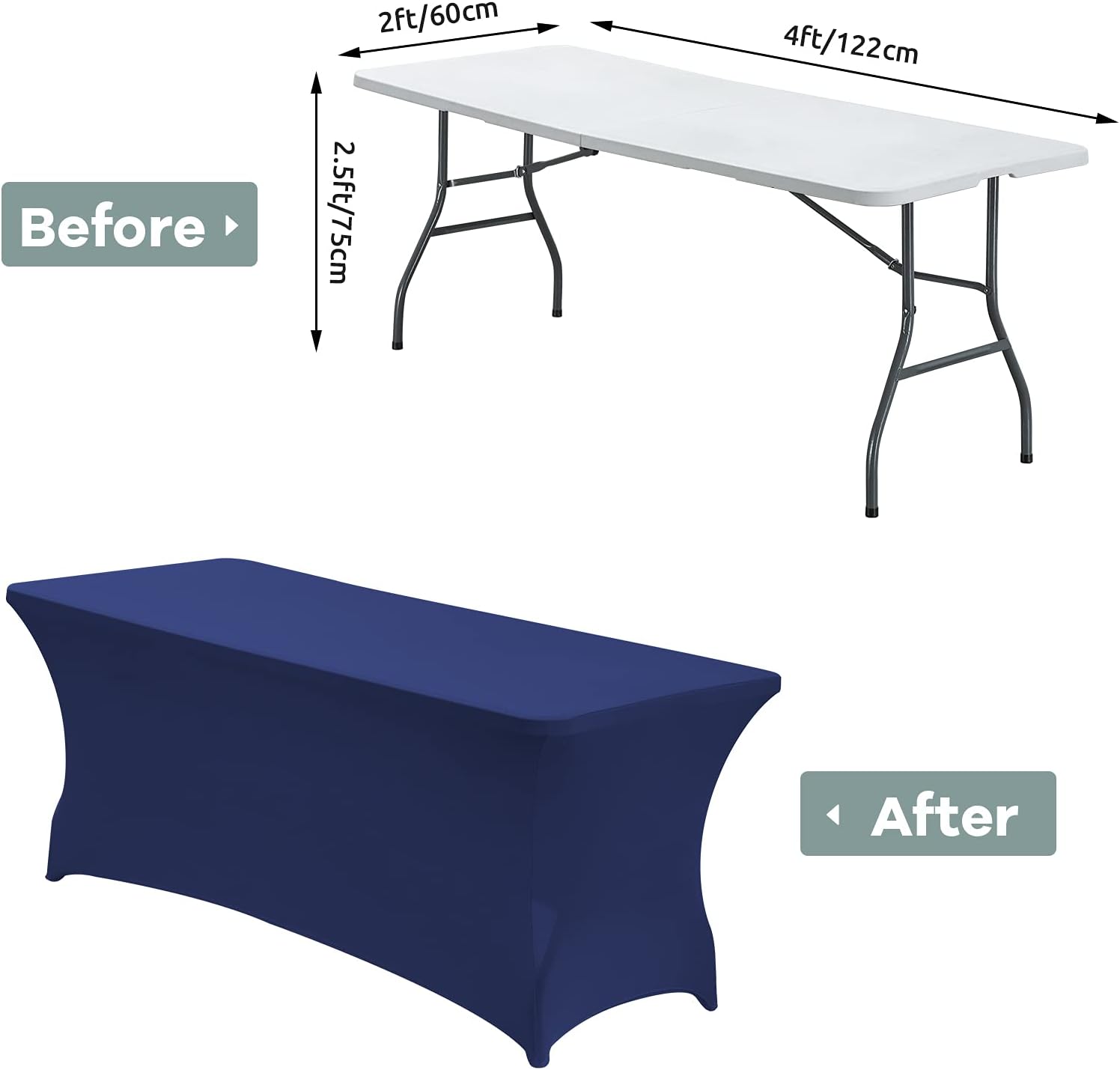• [Easy To Set Up]: Our table cover is easy for you to set up,just wrap around your table, put 4 table legs into Elastic leg pockets,and ensuring that every part of the rectangular table is covered and spandex table cloth cover is displayed uniformly;It can be used for both indoors and outdoors