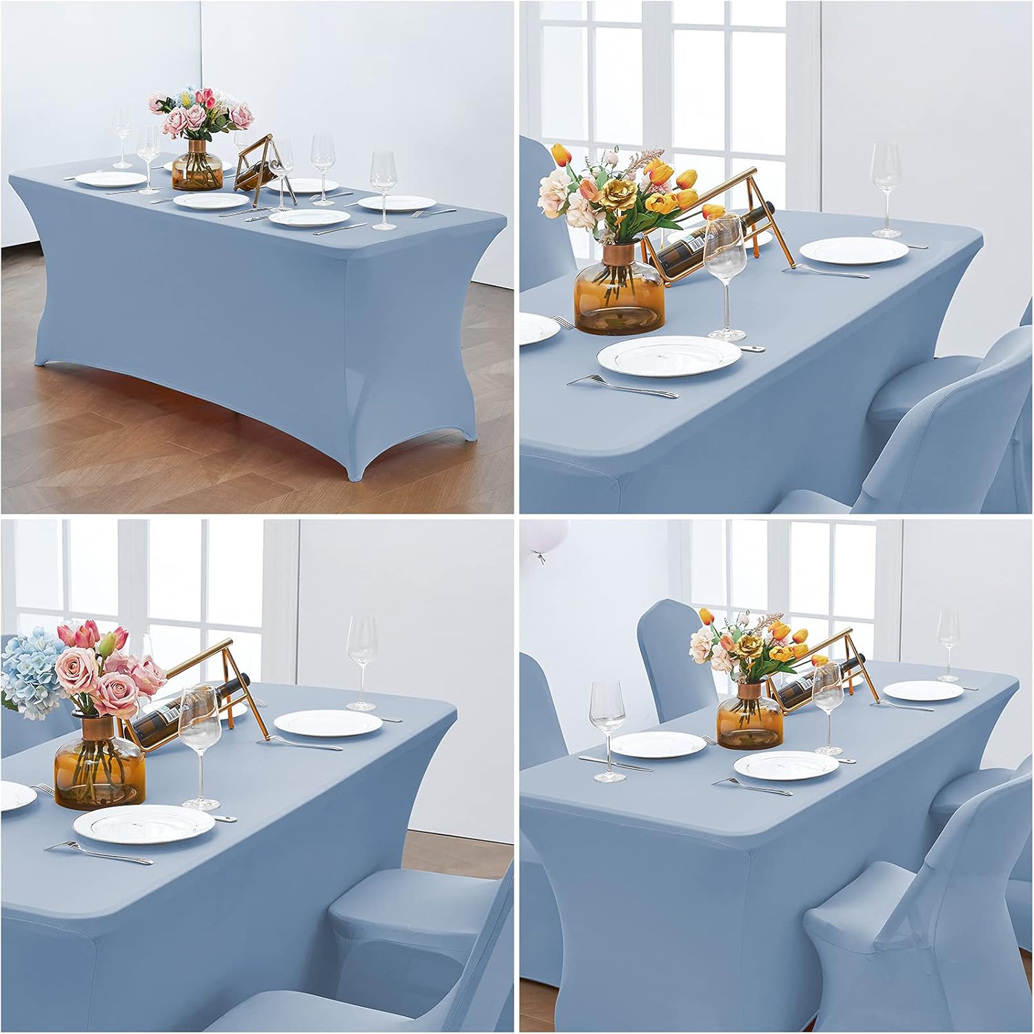 • [Easy To Set Up]: Our table cover is easy for you to set up,just wrap around your table, put 4 table legs into Elastic leg pockets,and ensuring that every part of the rectangular table is covered and spandex table cloth cover is displayed uniformly;It can be used for both indoors and outdoors