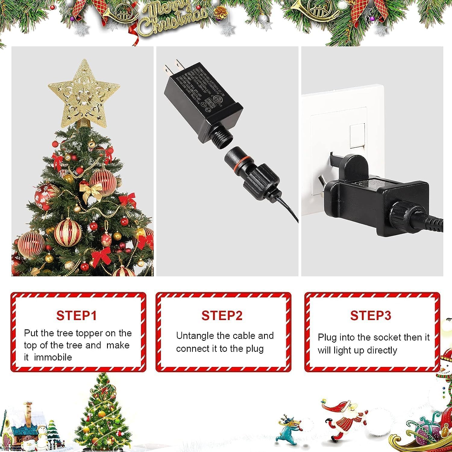 • Stable and Easy As Christmas Decorations: The green clip can be easily attached to the Christmas tree,easily hidden in the tree. Just attach it to the top of a Christmas tree, plug it in, and you get the illusion of snowflake lighting and sparkling Christmas trees.It's a most beautiful christmas lights.