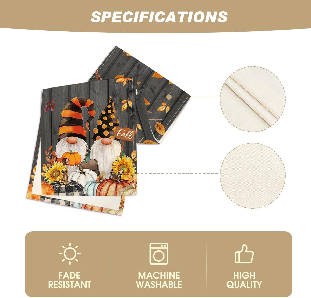 Artoid Mode Fall Gnomes Pumpkins Sunflower Maple Leaves Thanksgiving Table Runner, Seasonal Harvest Vintage Kitchen Dining Table Decoration for Indoor Outdoor Home Party Decor 13 x 72 Inch