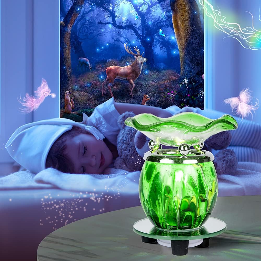HUNANBANG 3 in 1 Electric Oil Warmer Scented Wax Warmer Wax Melt Warmer Melter Fragrance Wax Burner(LW-Green2)
