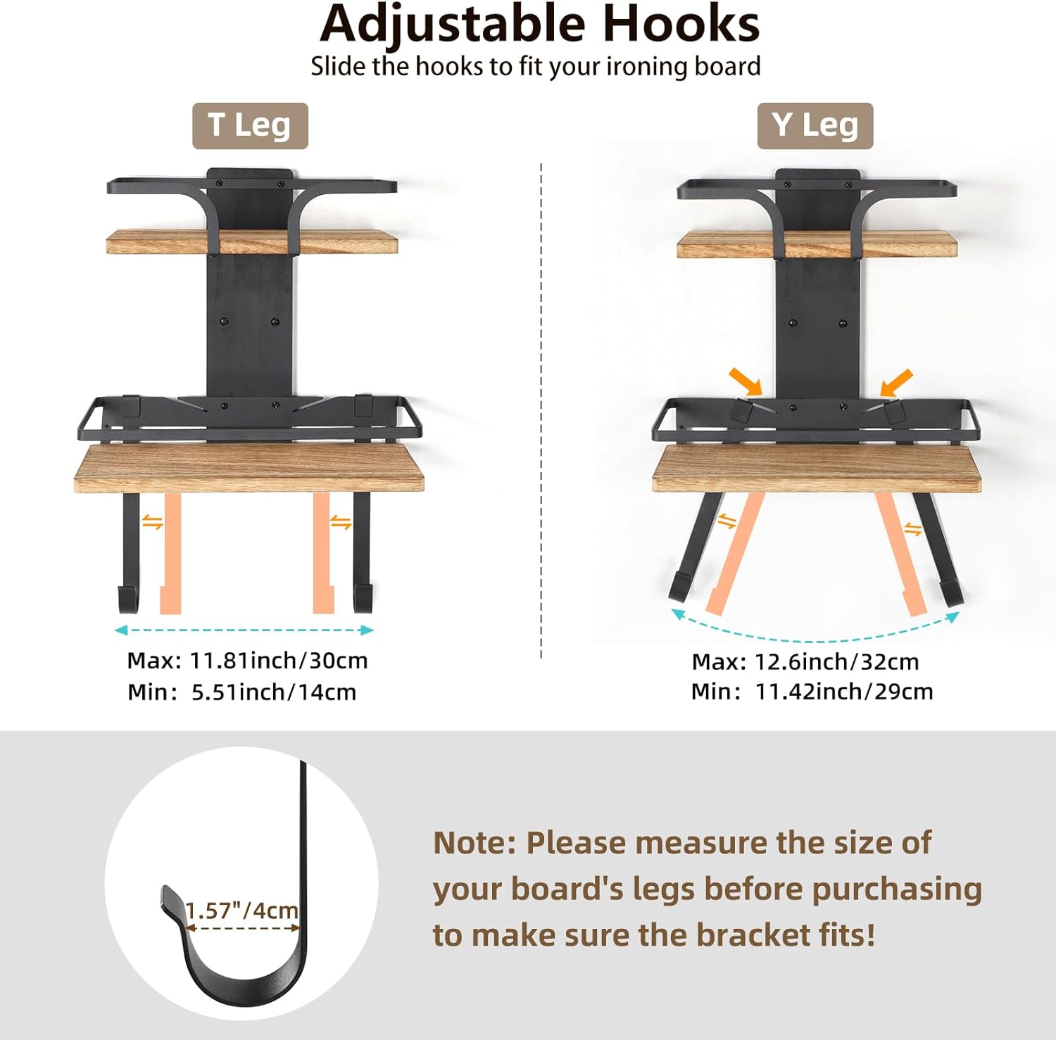 • 【2-Layer Larger Storage】Upgraded 2-layer solid wood design, this ironing board hanger for wall offers twice as much storage space as any other products. It is convenient for you to keep your irons, ironing board and ironing accessories in one location.