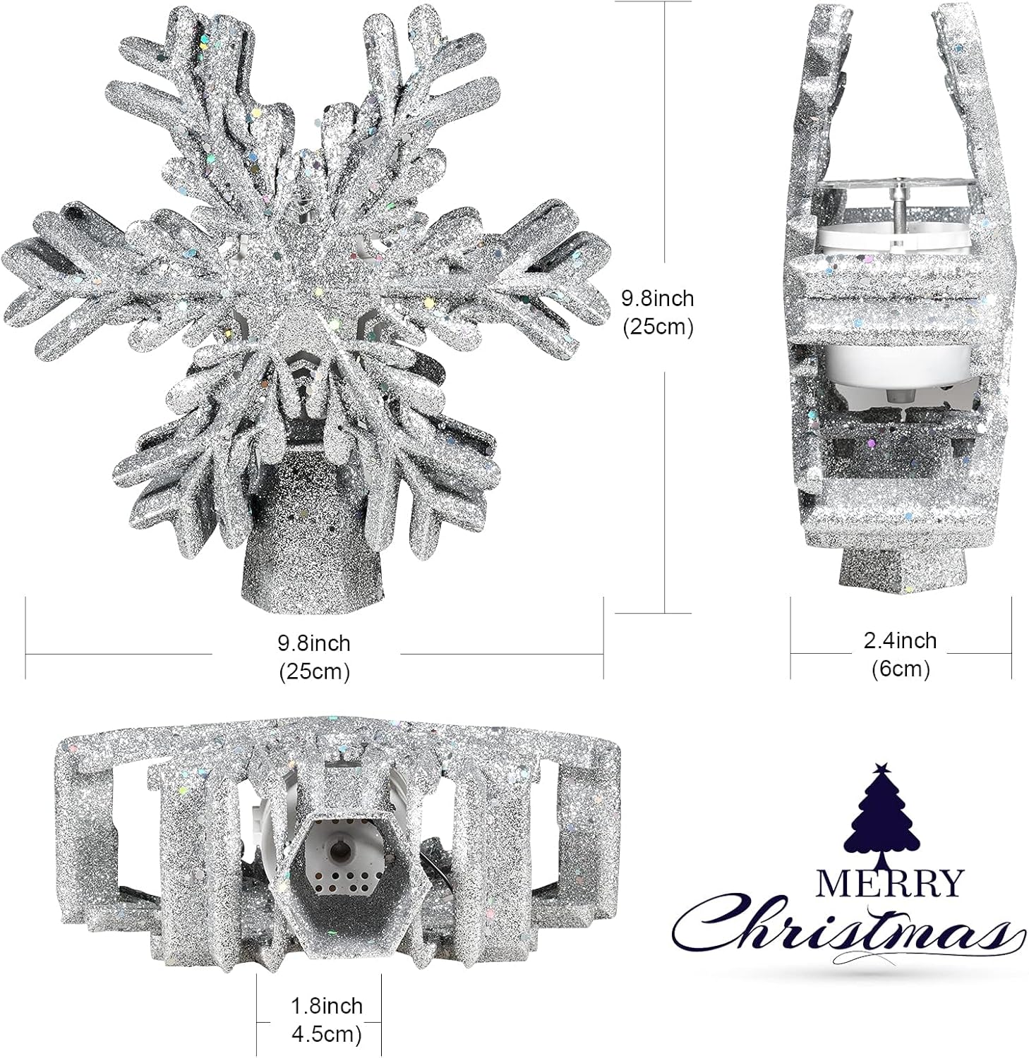 Christmas Tree Topper Lighted with Snowflake Projector, LED Rotating 3D Glitter Tree Topper for Christmas Tree, Christmas Decorations Lights (Silver)