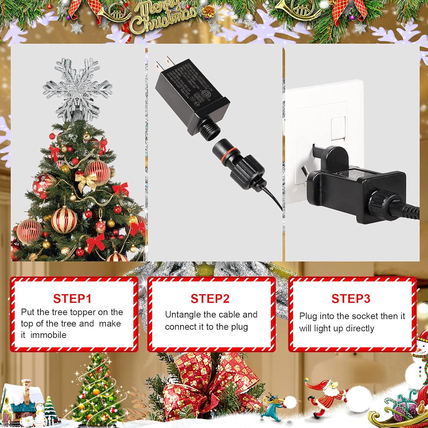 • Stable and Easy As Christmas Decorations: The green clip can be easily attached to the Christmas tree,easily hidden in the tree. Just attach it to the top of a Christmas tree, plug it in, and you get the illusion of snowflake lighting and sparkling Christmas trees.It's a most beautiful christmas lights.