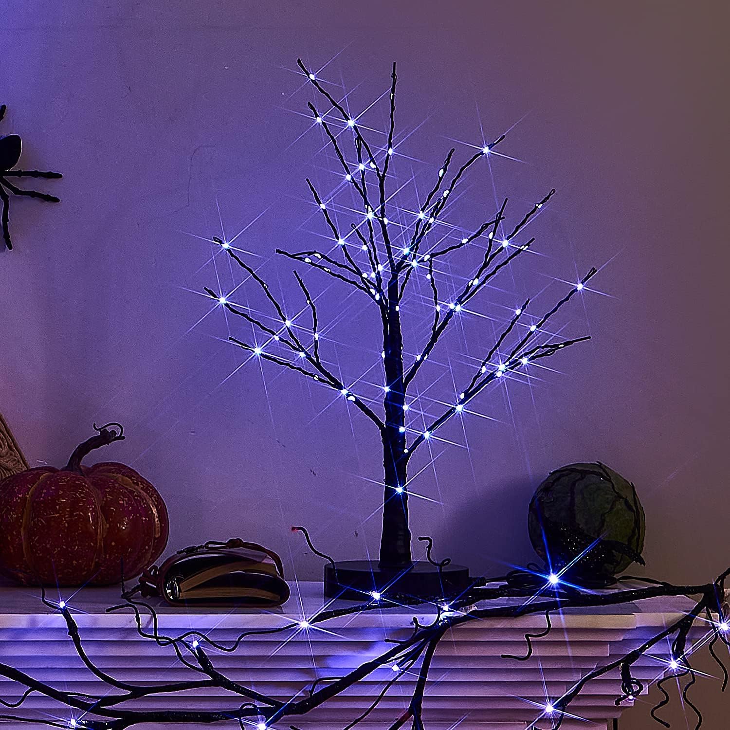 • 🎃 HALLOWEEN BLACK TREE: 2024 new designed table tree lights,80 purple LED fairy lights wrapped on the branches,is best decoration for Halloween party.
