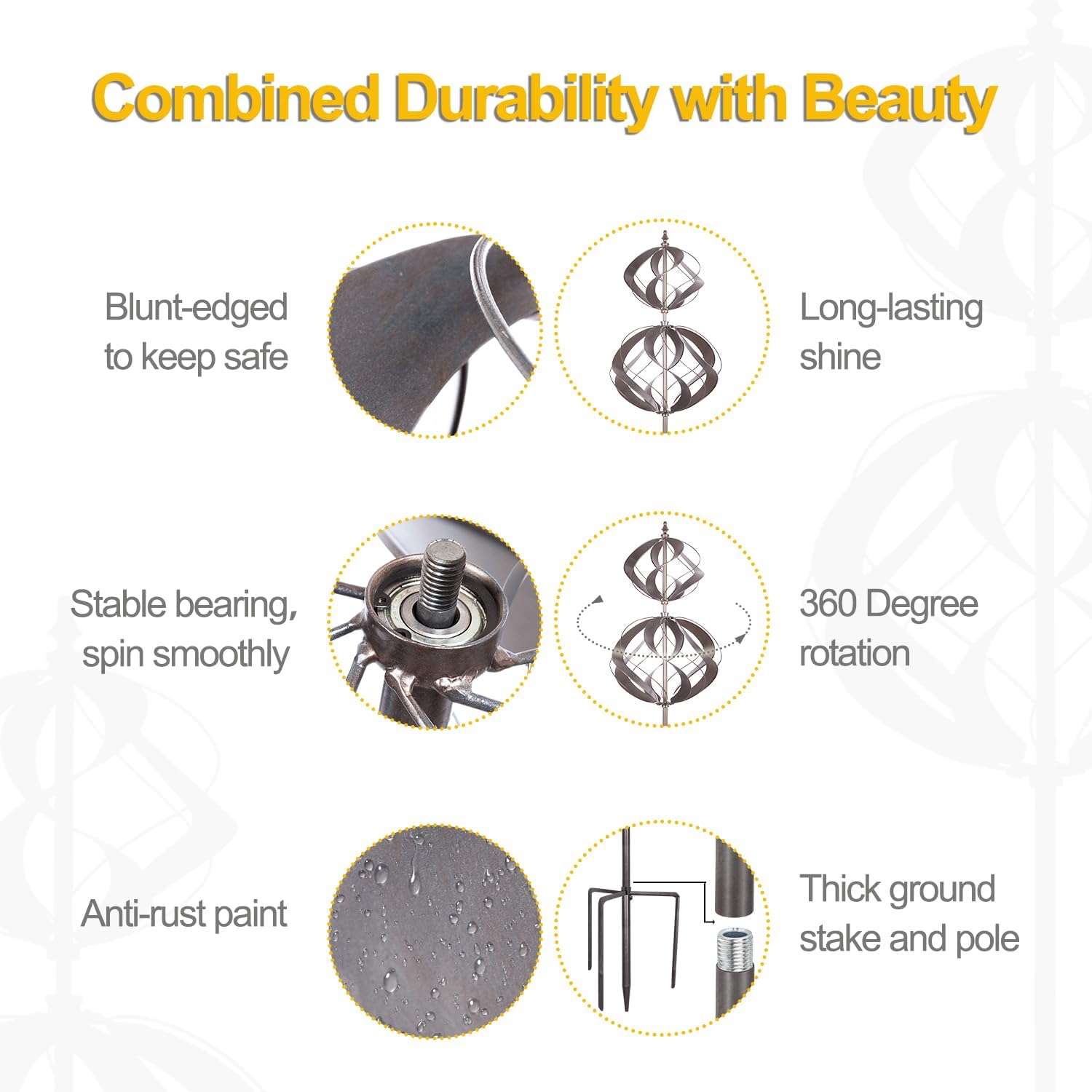 • 【The Perfect Garden Decorations】Our 3d Metal Kinetic Spinner is optimum for Patio, Porch, Path, Pool, Yard, Garden, Garage, etc. It can be a good choice for both your garden or perfect as a remembrance gift.