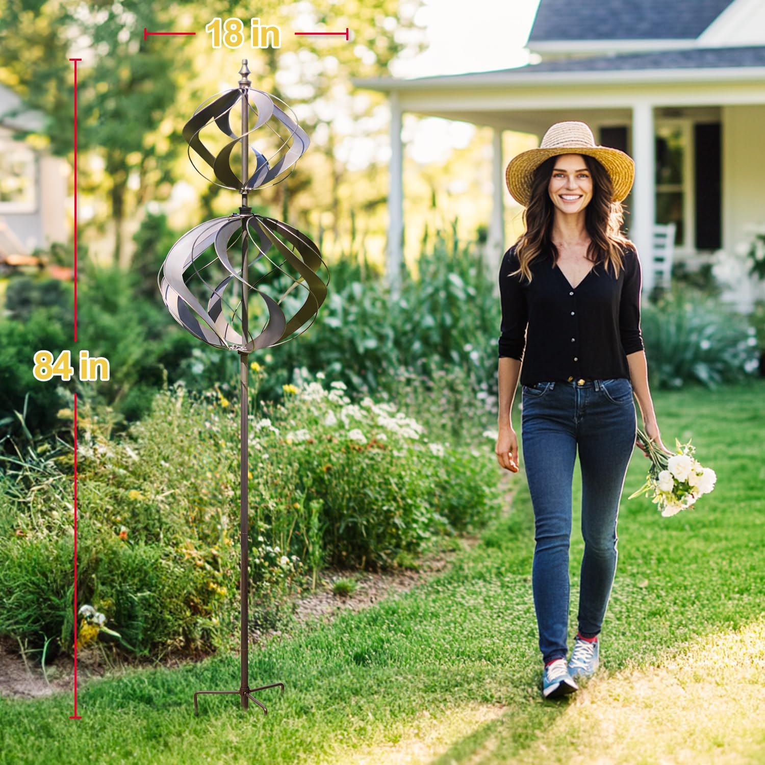 LimeHill Wind Spinner for Yard and Garden - Large Metal Windspinners for Outdoor Decorations (Silver Spherality)