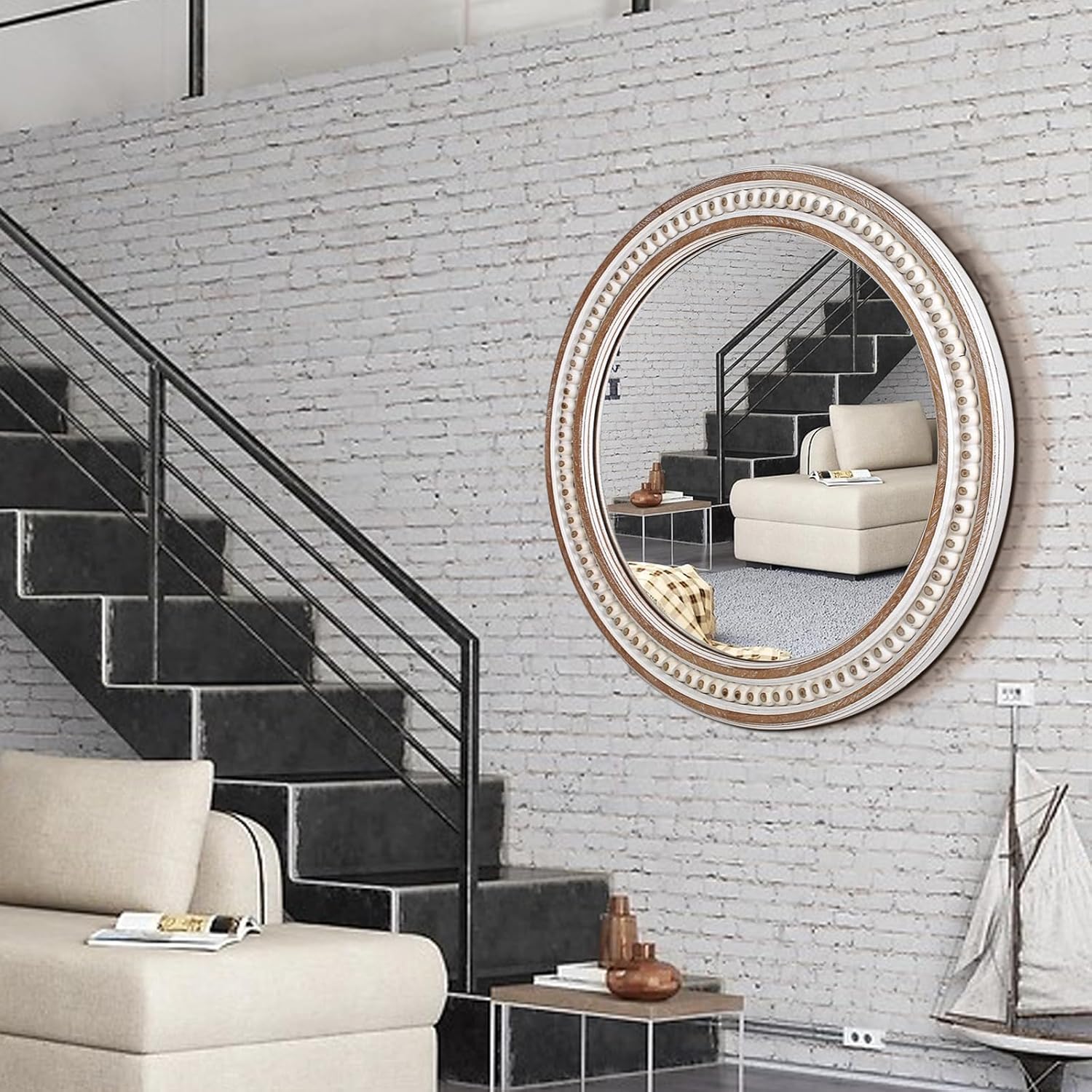• Perfect Size for Versatile Use: Measuring 24 inches in diameter, this round mirror is ideally sized for a variety of uses. Hang it above your bathroom sink for a stylish and functional addition, or place it in your entryway to create a welcoming atmosphere. Its size makes it a great choice for small to medium-sized rooms, where it adds both light and a sense of openness.