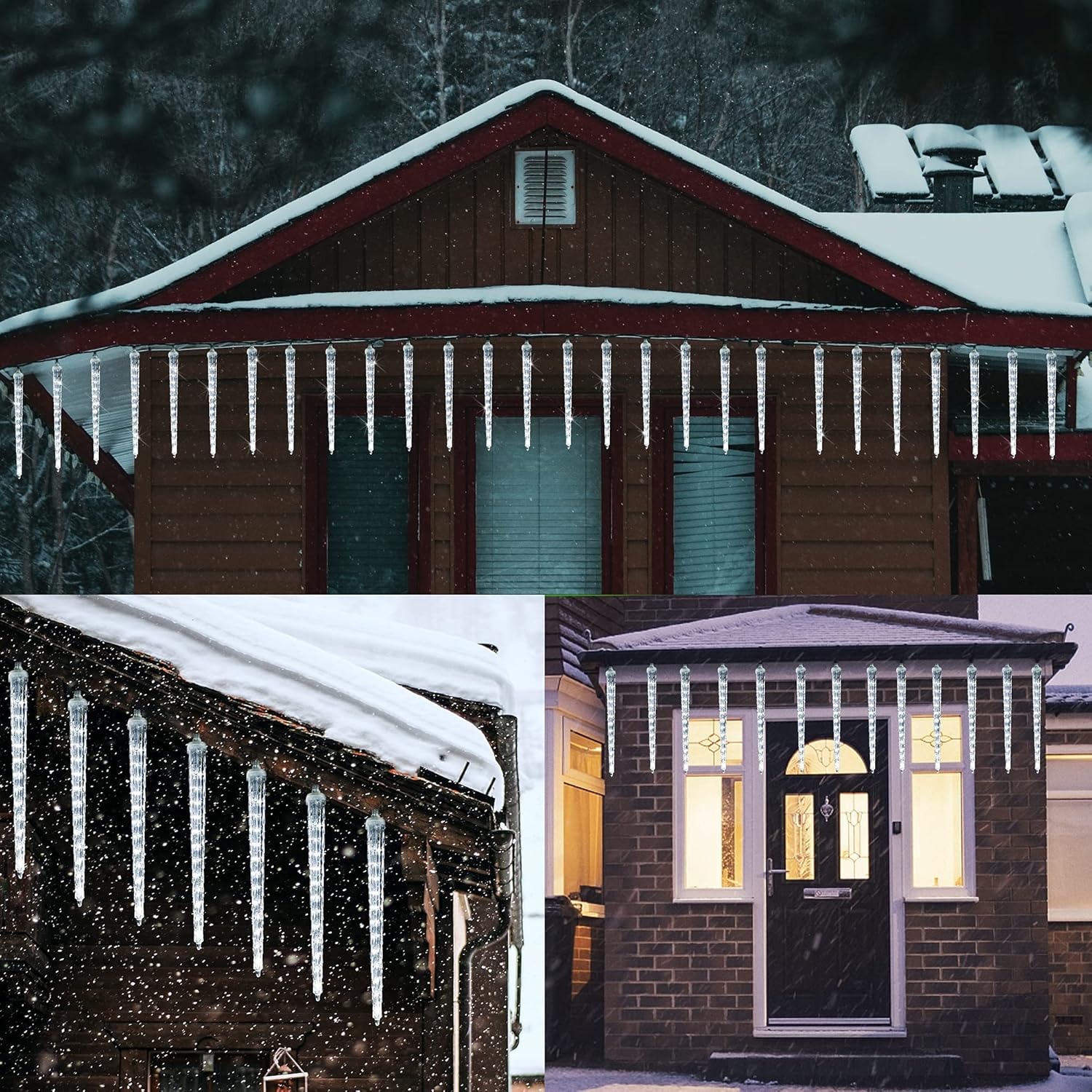 • Icicle Meteor Shower Lights: 8 icicles 192 SMD LED cool white crystal ice falling lights are sure to bring brightness to your home outdoor Christmas decoration. Translucent crystal ice downpipe small columns lights, rows hung in the eaves, getting ready for Christmas day and winter.