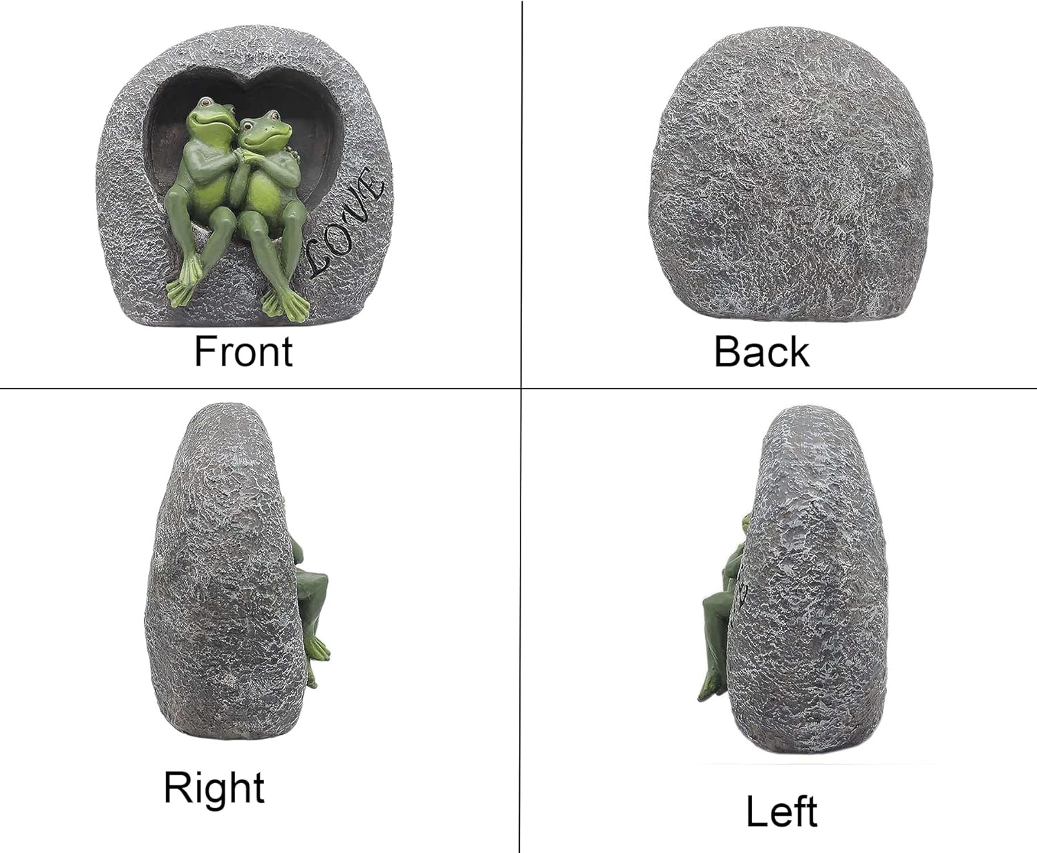 • 🌹Great Design - A frog couple embracing on a rock which with a heart hollow shape. This decorative frogs suit to be placed on flower bed, fairy garden, and as a frog stuff collection.