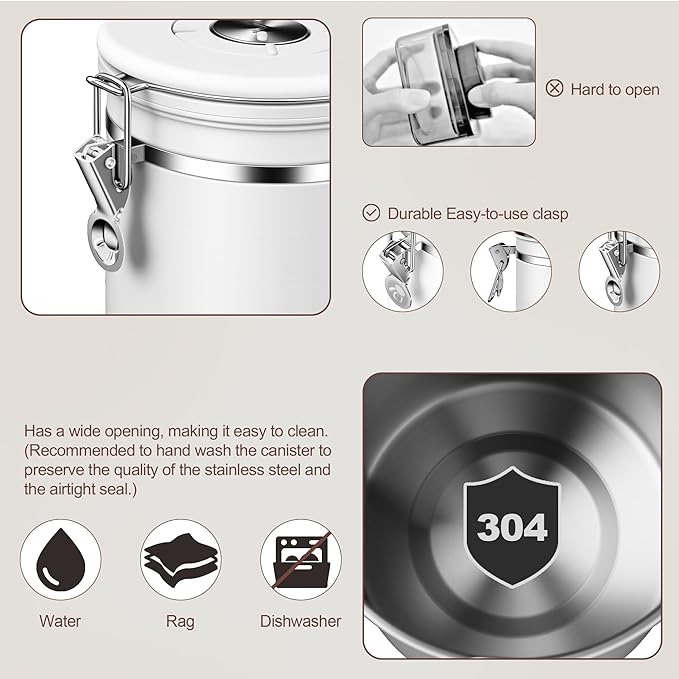 • 【BUILT-IN DATE TRACKER】A simple yet incredibly useful feature! The date tracker lets you monitor when the canister was last filled, helping prevent your coffee from going stale unnoticed. A stainless steel scoop is conveniently attached to the side, so you’re never left searching for a measuring spoon. Features a superior airtight seal for maximum freshness.